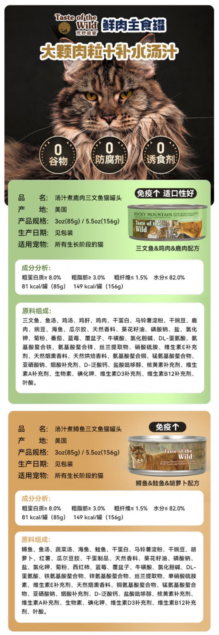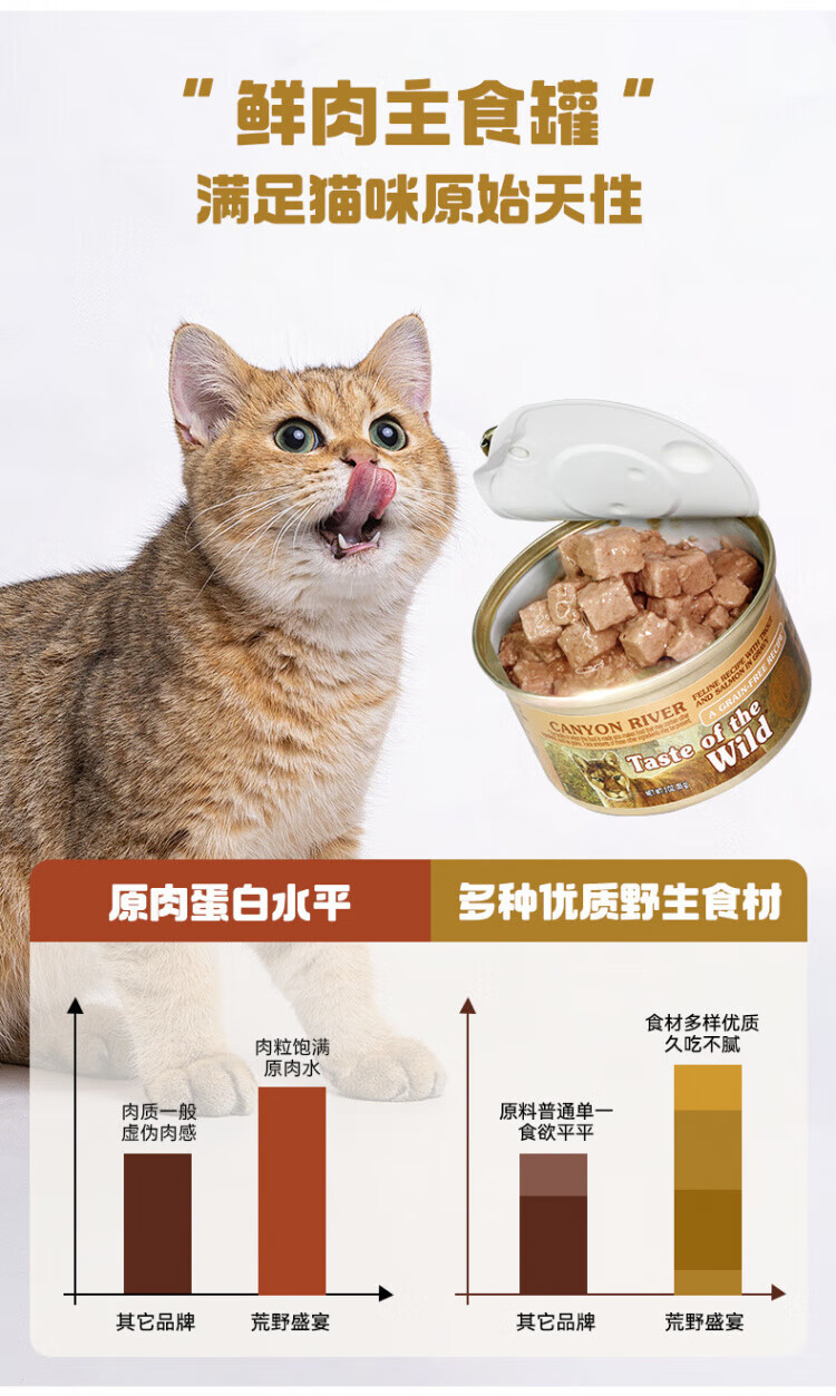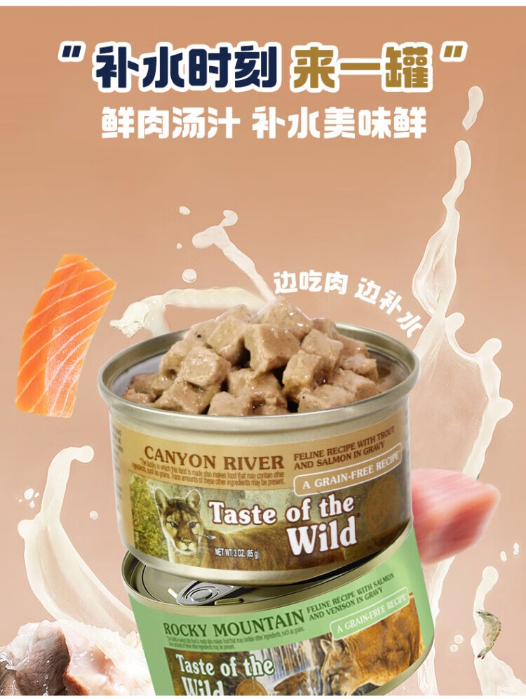 Taste of the Wild canned cat snacks, staple food, hydrating cans for cats, 85g* 6 cans, venison 85g* 3 cans + trout 85g* 3 cans