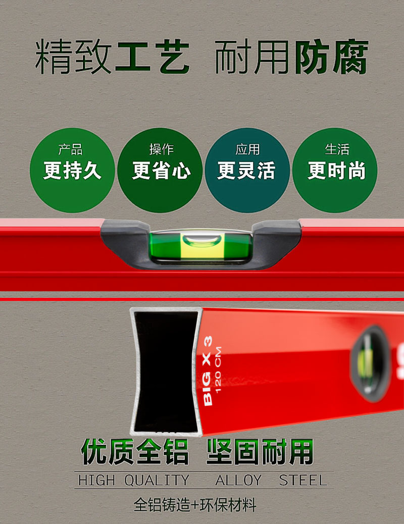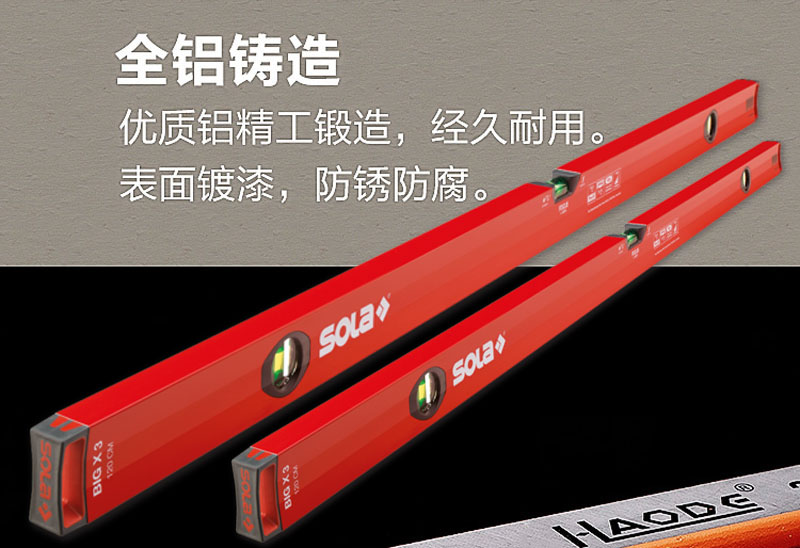 SOLa imported level Austrian red thickened aluminum alloy shell non-breaking bubble tube luminous bubble measurement BIGX3 bubble 100cm1m