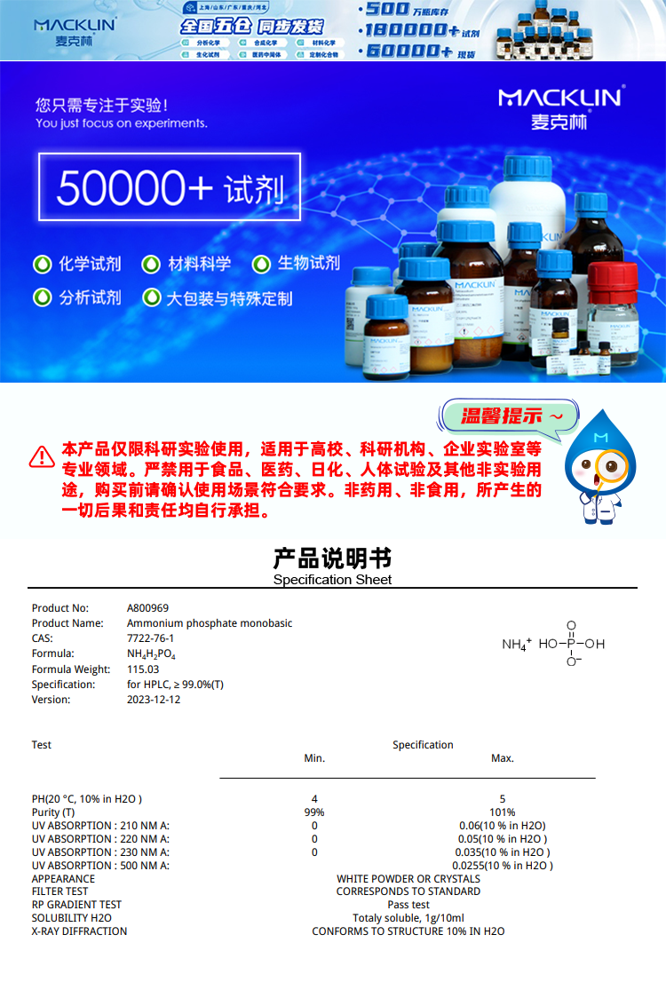 Macklin ammonium dihydrogen phosphate CAS 7722-76-1 A800969-100g