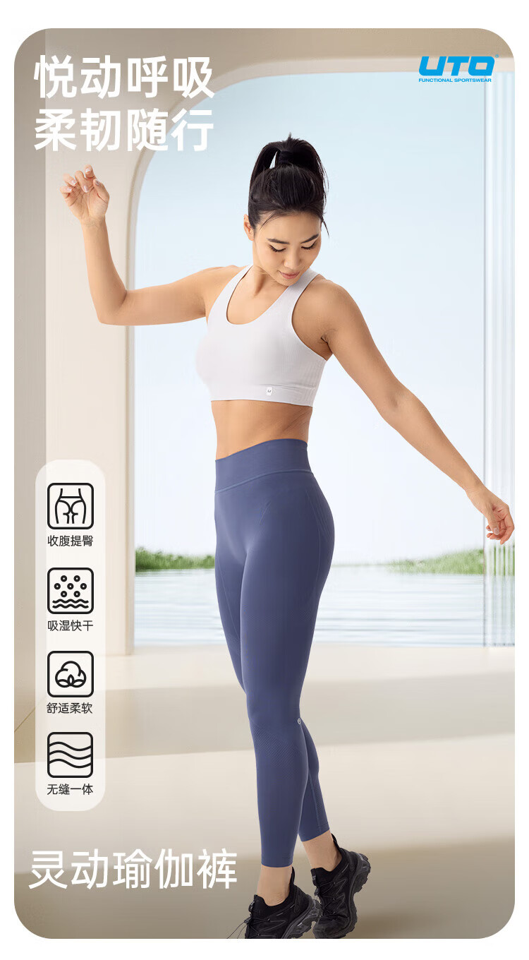 UTO Women's Line Terms Seamless Yoga Pants Sports Fitness Pants Pilates Running 25th Spring and Summer New Product Navy L
