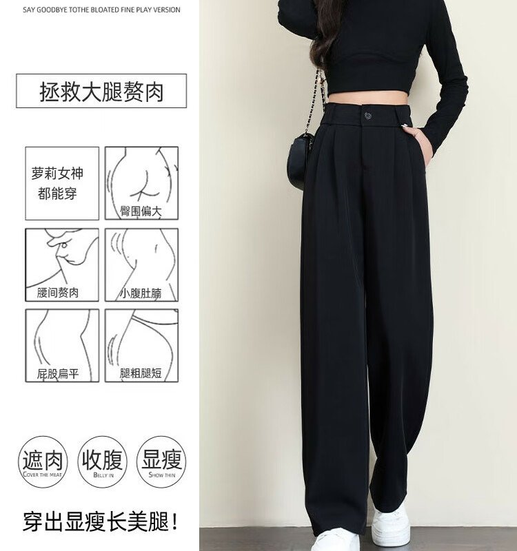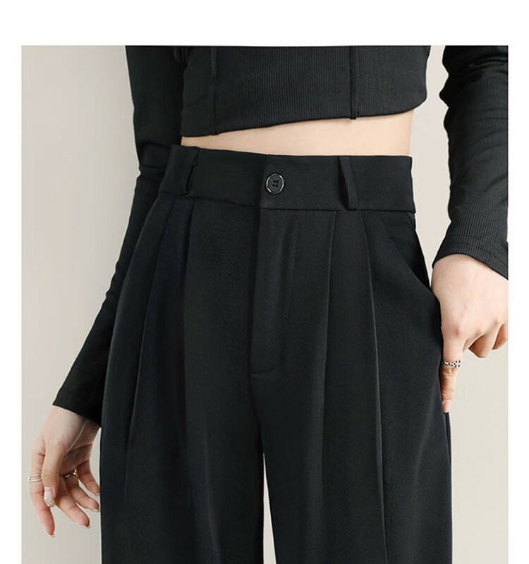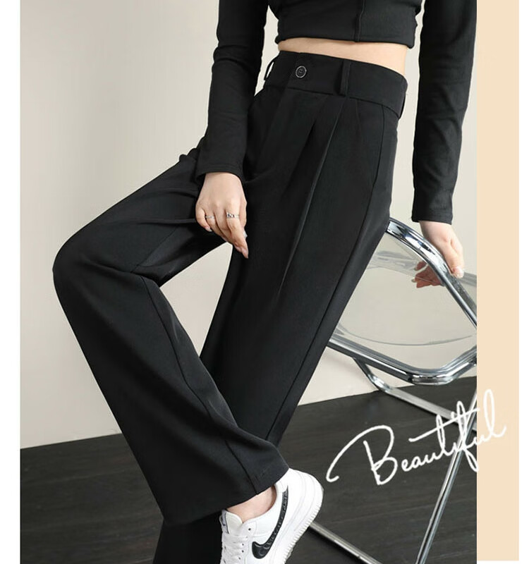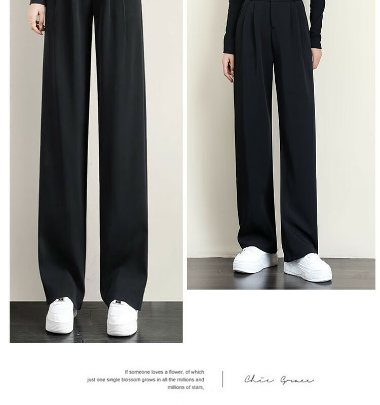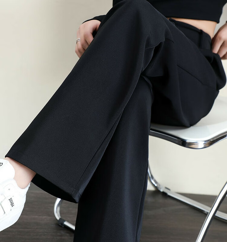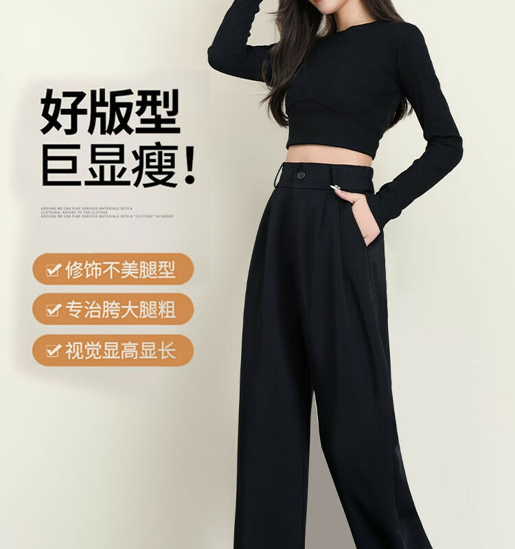 Wide-leg trousers for women in spring and summer black high-waist drape slim and versatile narrow version loose straight casual floor-length suit pants black spring regular style - small style M