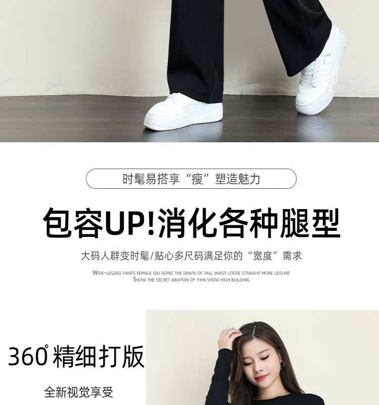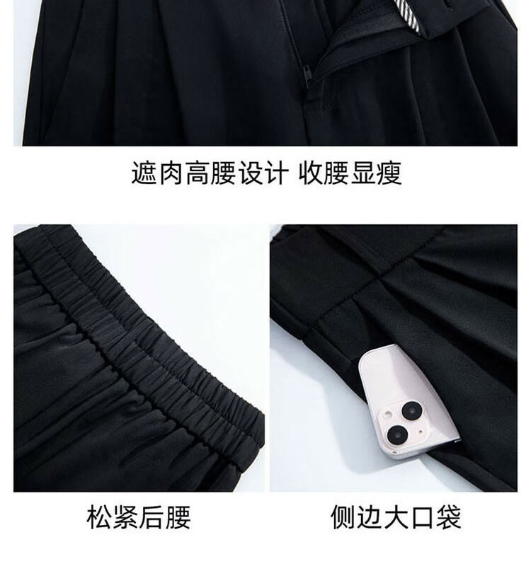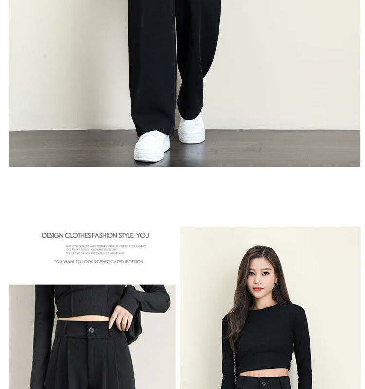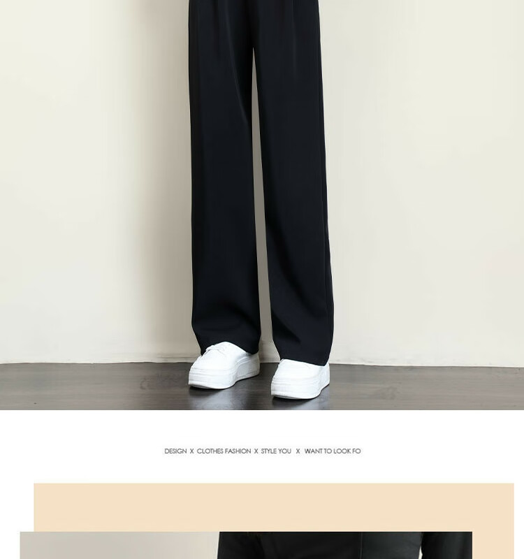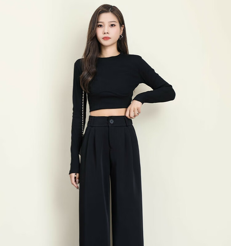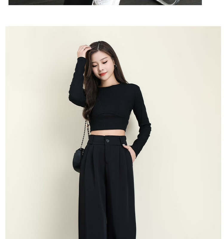 Wide-leg trousers for women in spring and summer black high-waist drape slim and versatile narrow version loose straight casual floor-length suit pants black spring regular style - small style M