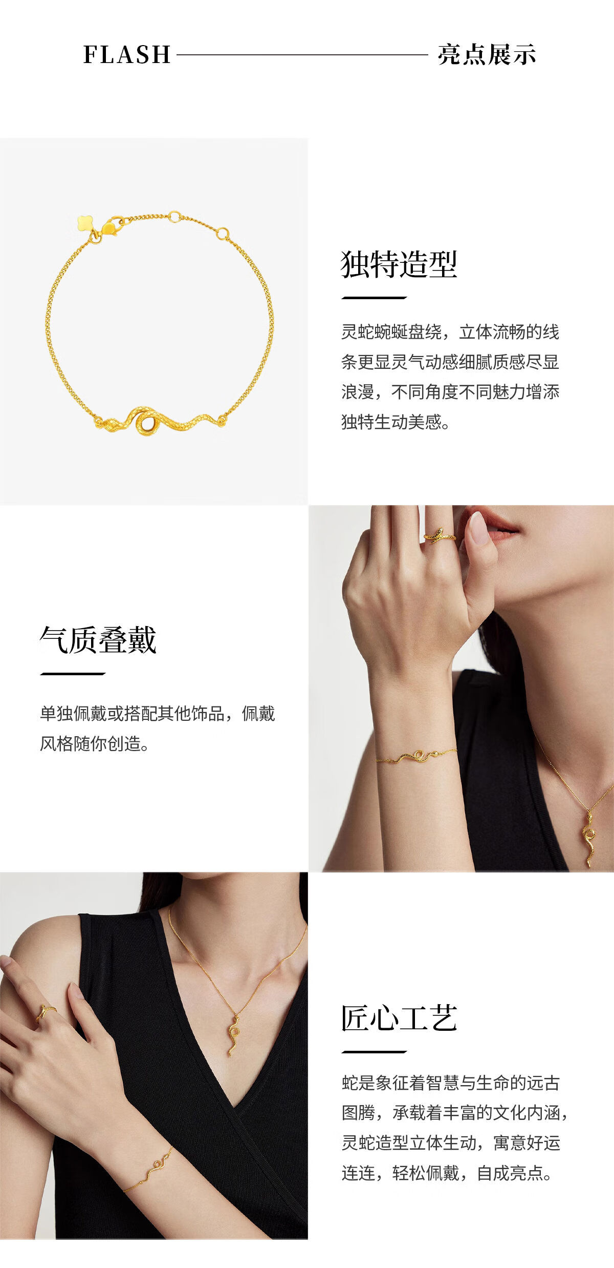 Moriyong official 18K gold-plated snake birth year bracelet for women, light luxury niche autumn and winter stacking bracelet accessories, golden snake bracelet