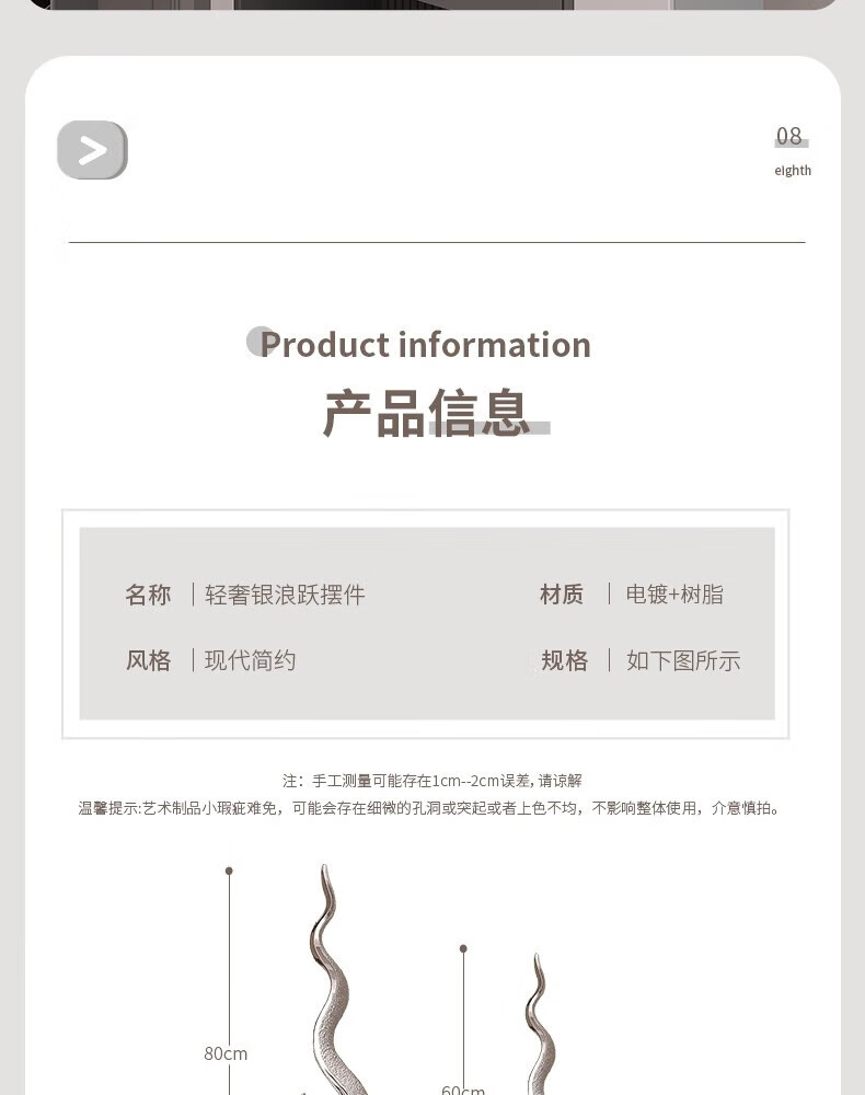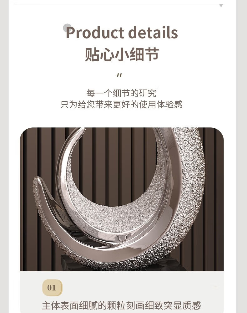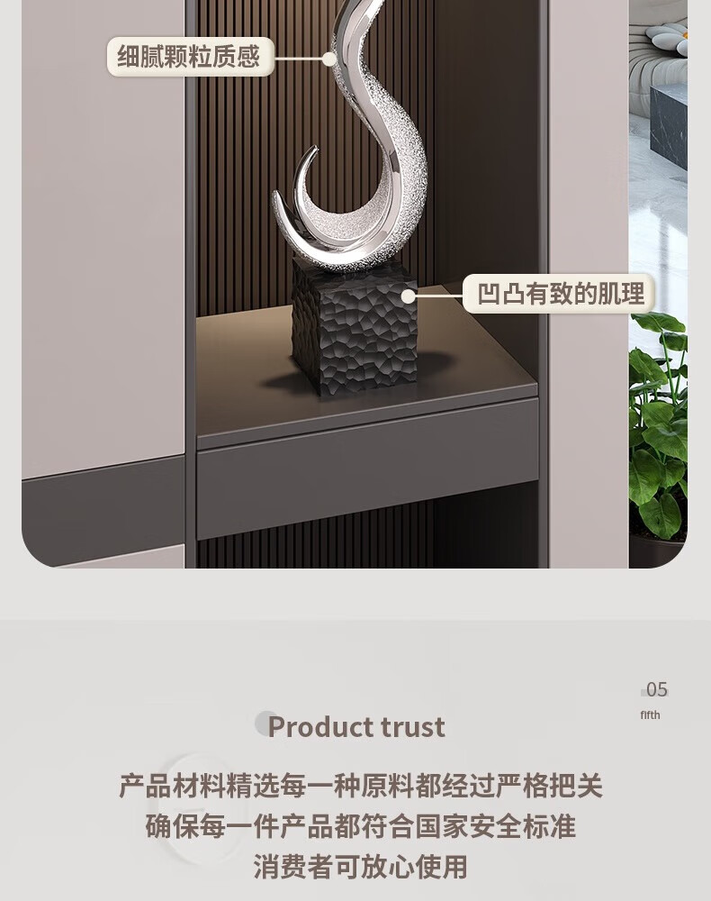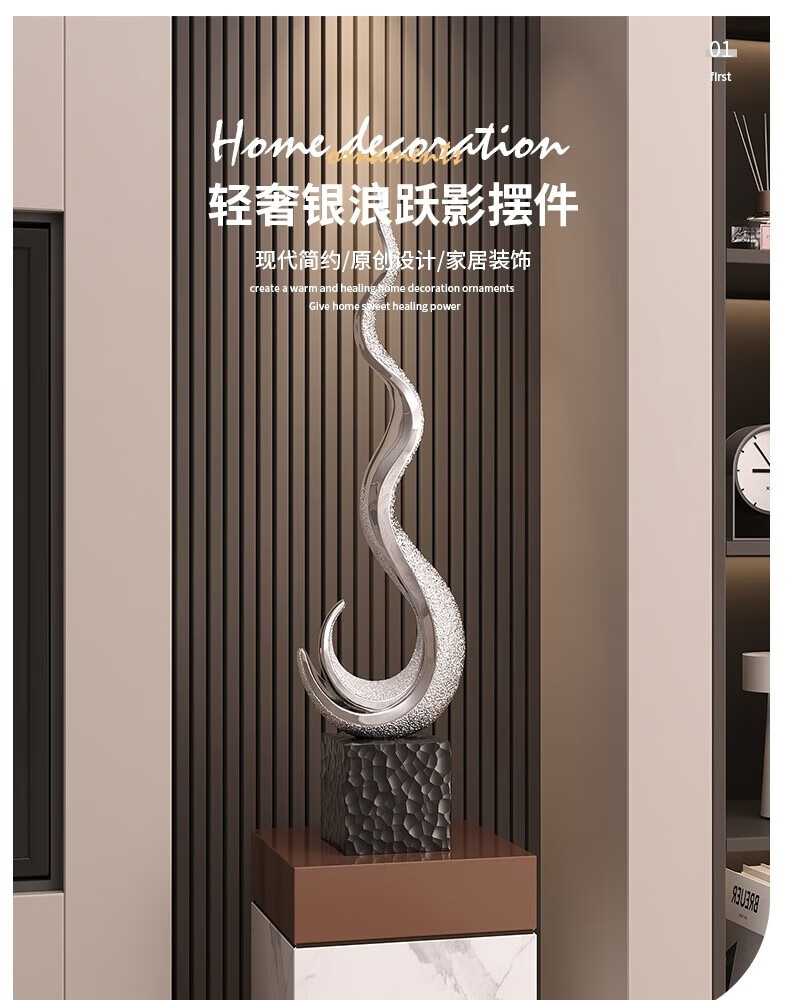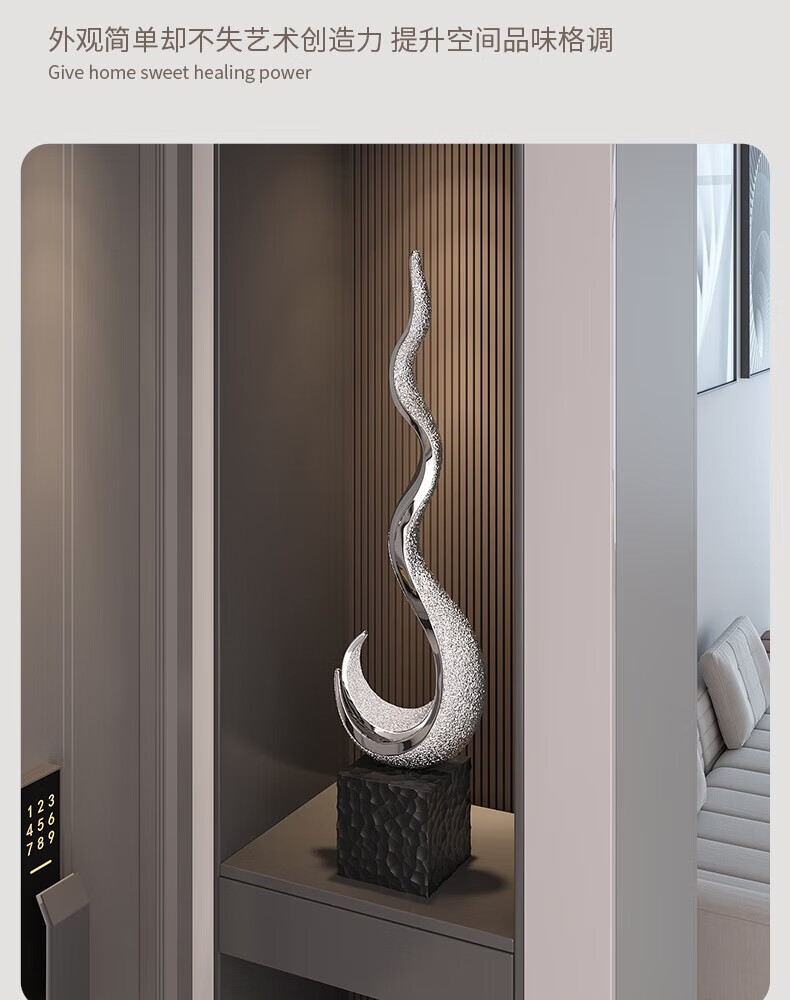 Ole's sculpture art flourishes, office furnishings, light luxury, high-end living room, large vertical high entrance cabinet, home furnishings H024 flourishes - electroplated silver - large size