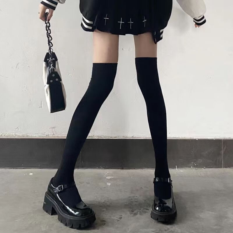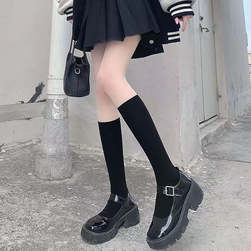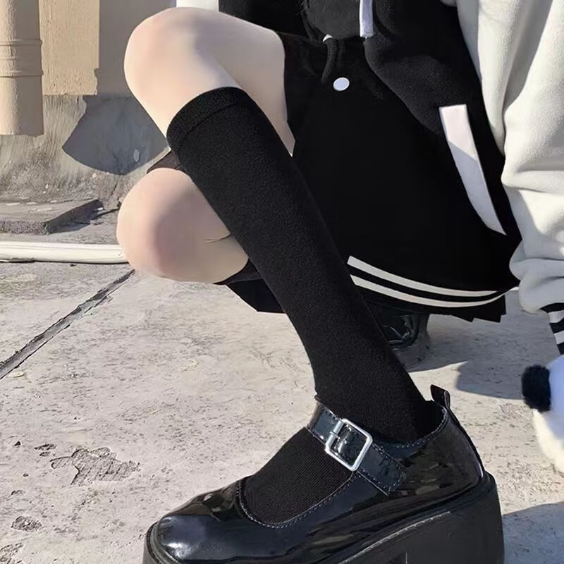 Yaojia 2 pairs of black and white pressure calf socks for women summer thin strong pressure jk socks over the knee socks Korean style stockings autumn white 2 pairs one size fits all over the knee