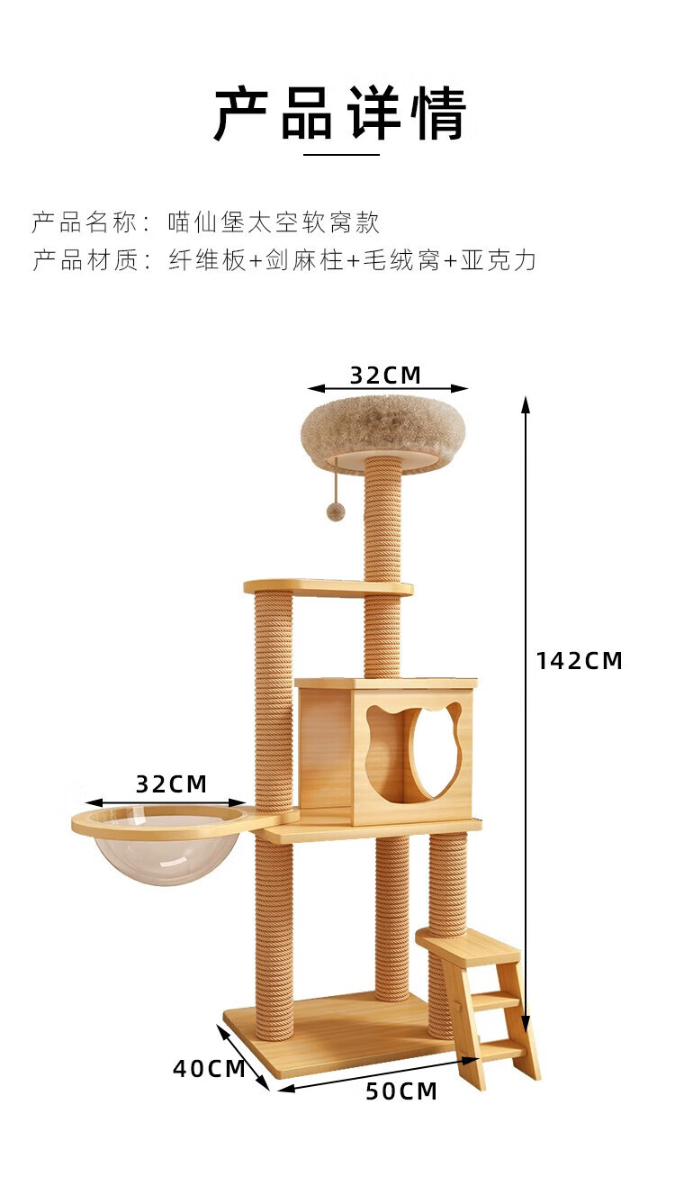 Long small pet cat climbing frame large cat nest cat frame universal pet cat toy sisal cat climbing tree cat scratching board cat jumping platform 80cm three layers fun style