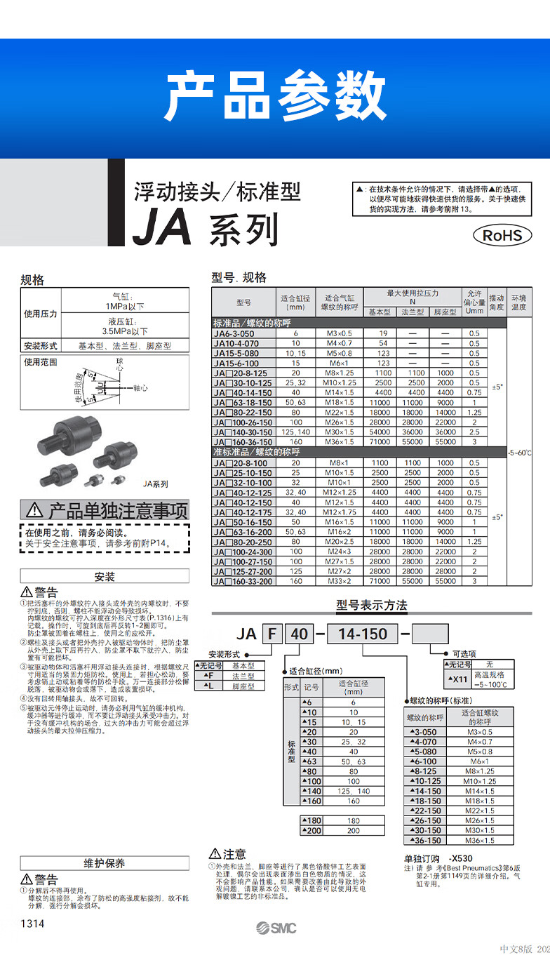 SMC JA 6/10/15/20/25/32/40/50-3/4/6/8/10/12-0 5 JA10-4-070