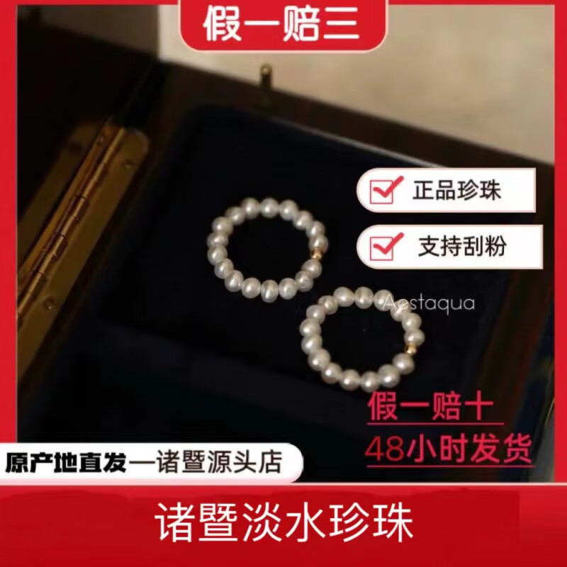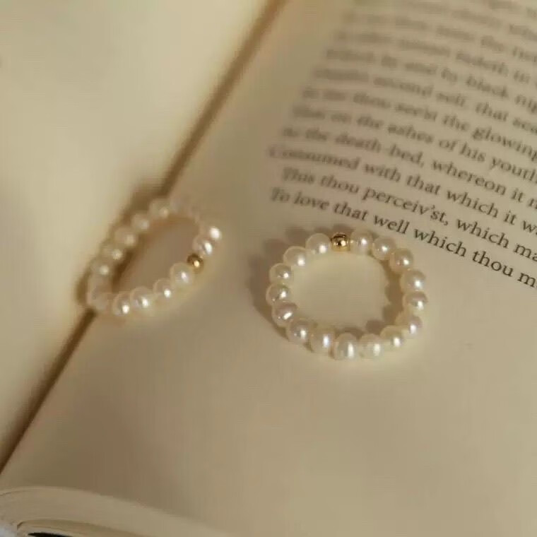 Zhuji Freshwater Nuclear Pearl Transfer Ring Women's Millet Bead Elastic Index Finger Ring High-end Light Luxury Holiday Gift Natural Pearl Transfer Ring About 6cm