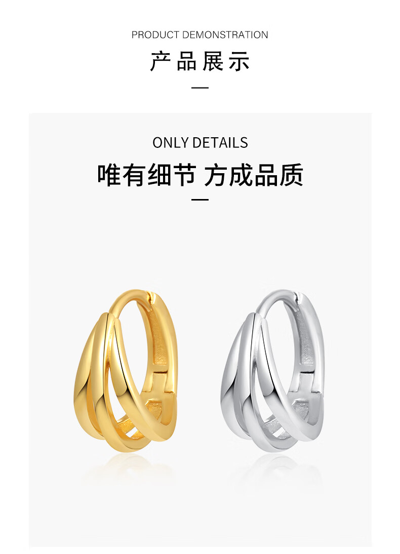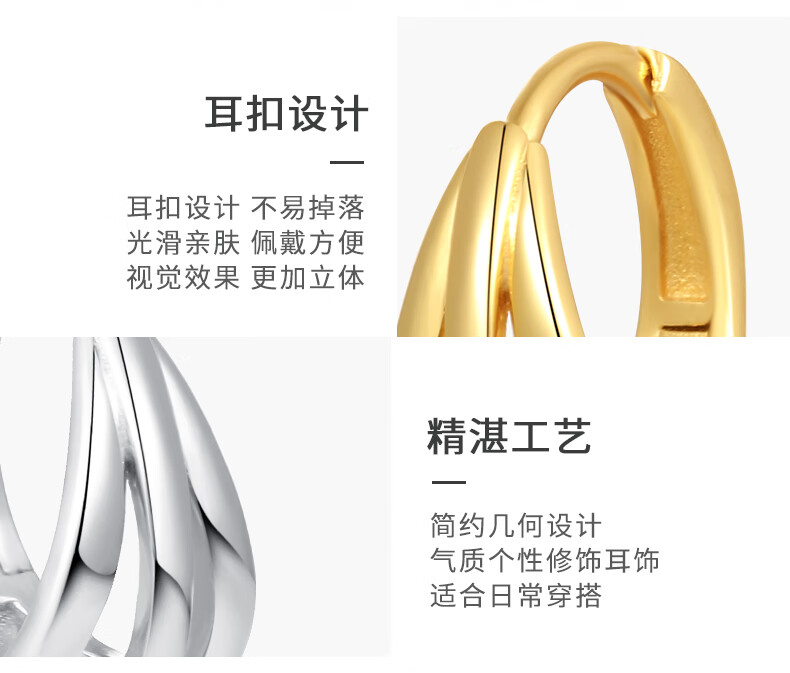 S925 sterling silver French earrings, elegant and high-end earrings, niche design earrings, light luxury earrings, pierced earrings, a pair of golden French earrings, all in sterling silver