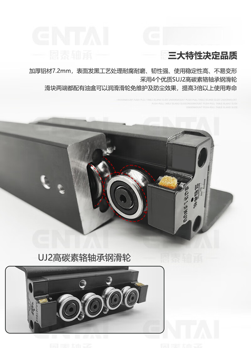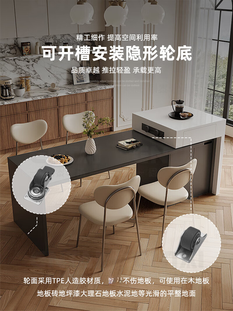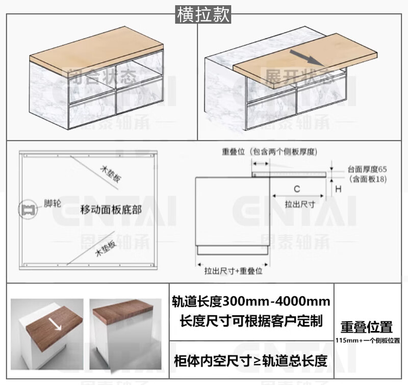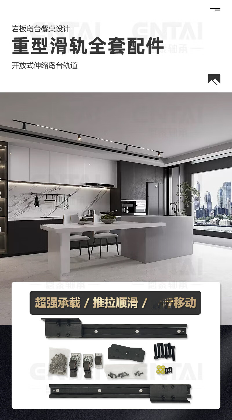 Dining table extension slide open guide rock slab bar side pull slide heavy-duty track island guide rail total track length 700mm/travel 585mm