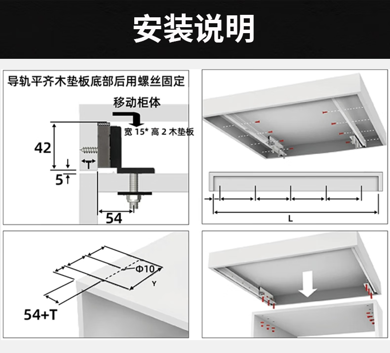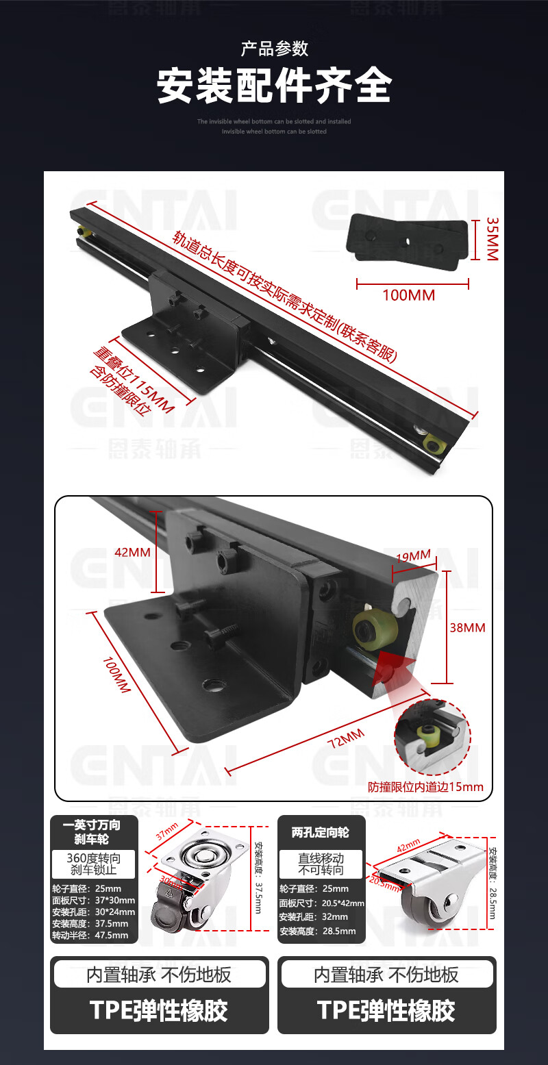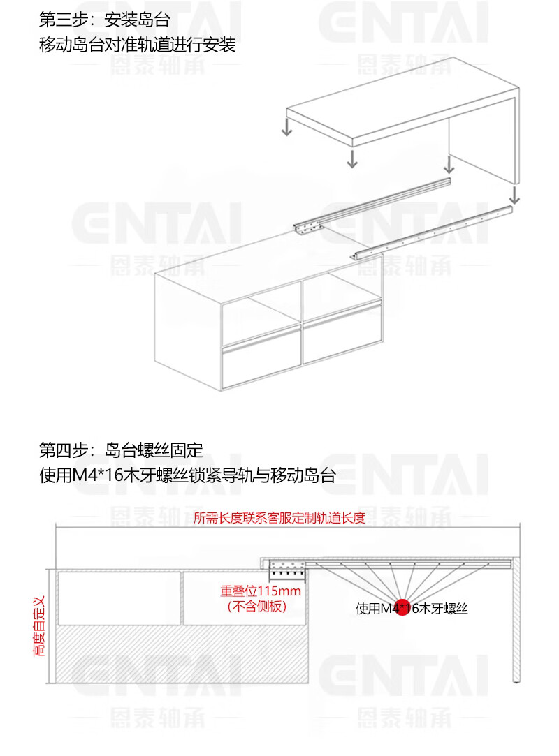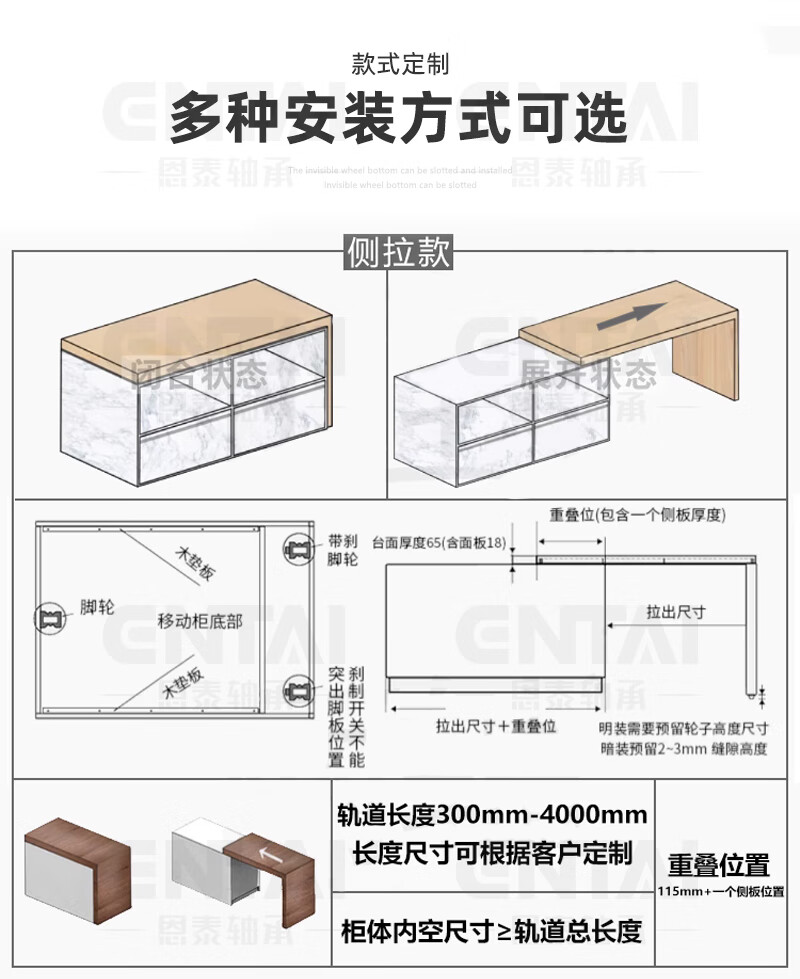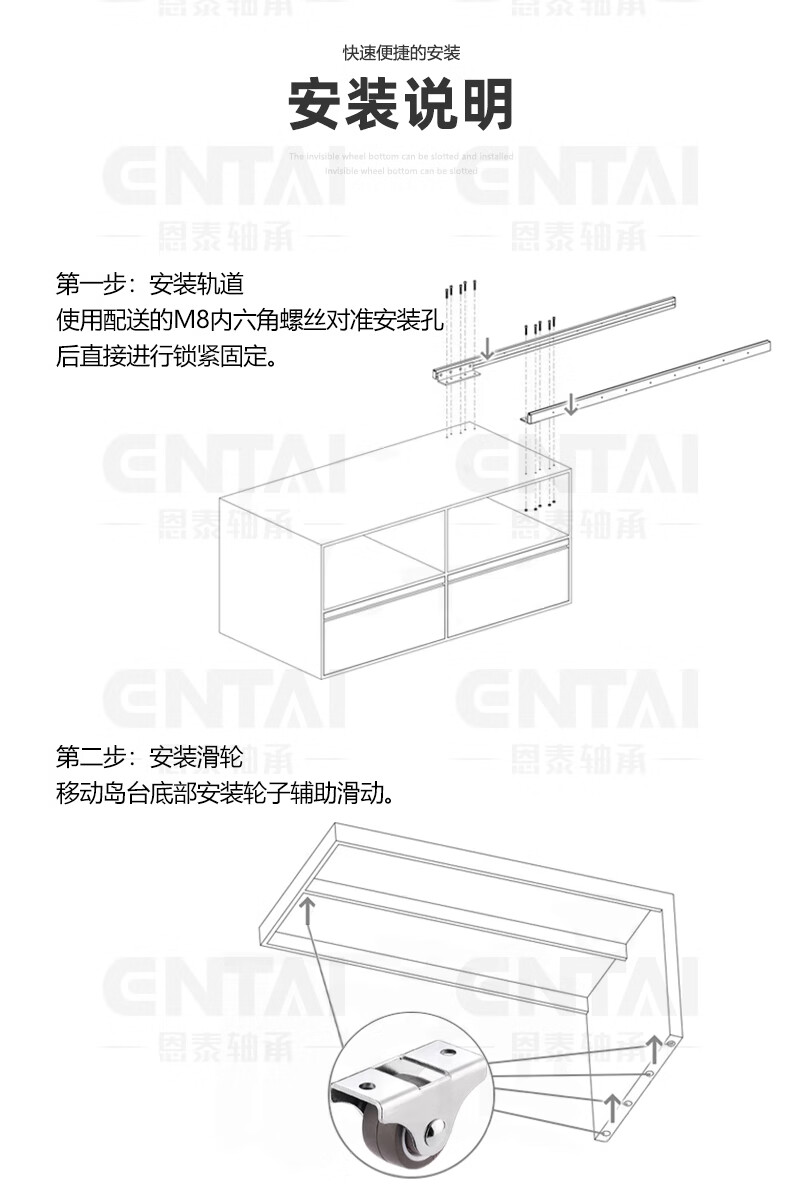 Dining table extension slide open guide rock slab bar side pull slide heavy-duty track island guide rail total track length 700mm/travel 585mm