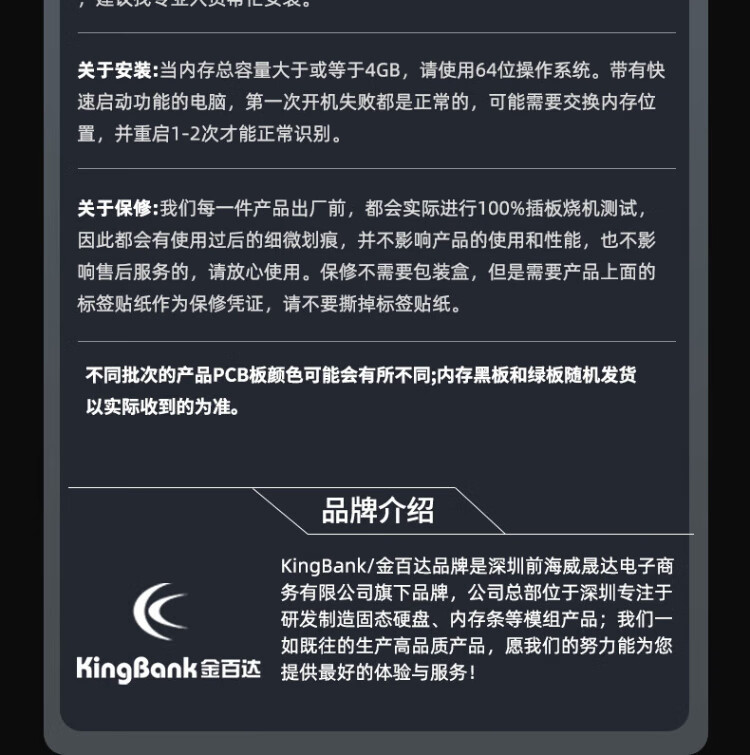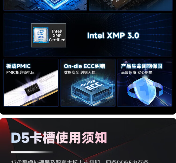 KINGBANK Yinjue ddr5 6000c30 black blade ddr5 memory stick 16gx2 desktop memory 680032g memory stick 7200 game e-sports vest strip 6400 domestic particles Yinjue 16G*2 6000 c30 Hynix M generation
