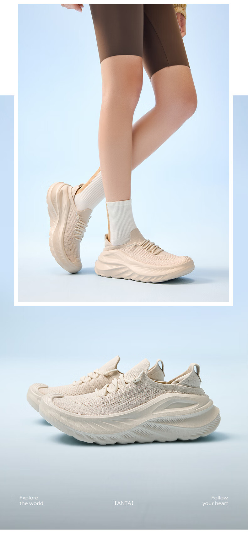 ANTA Explore the World | Comfortable Sports Shoes for Women 2026 Spring New Shock-Absorbing, Comfortable, Breathable and Versatile Training Shoes, White-2 36.5