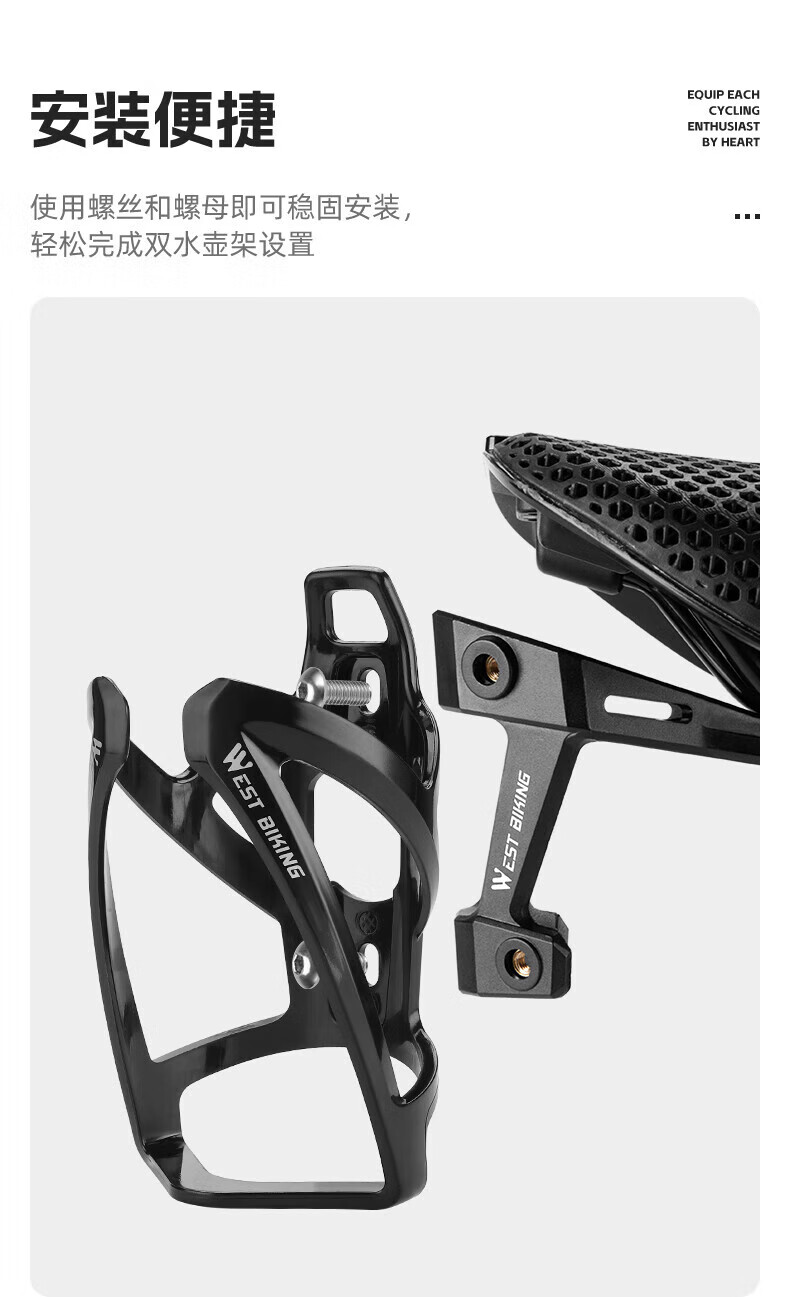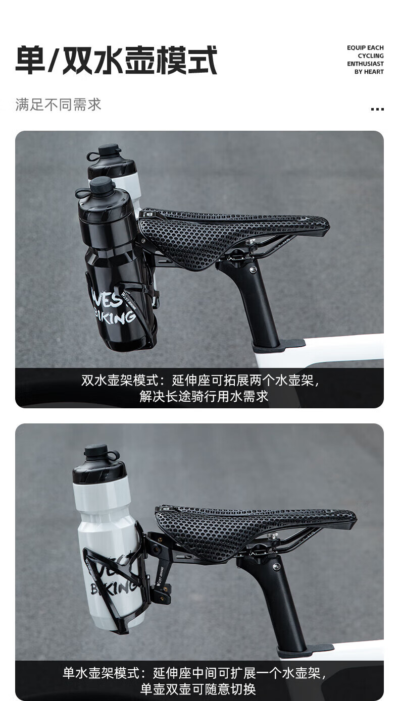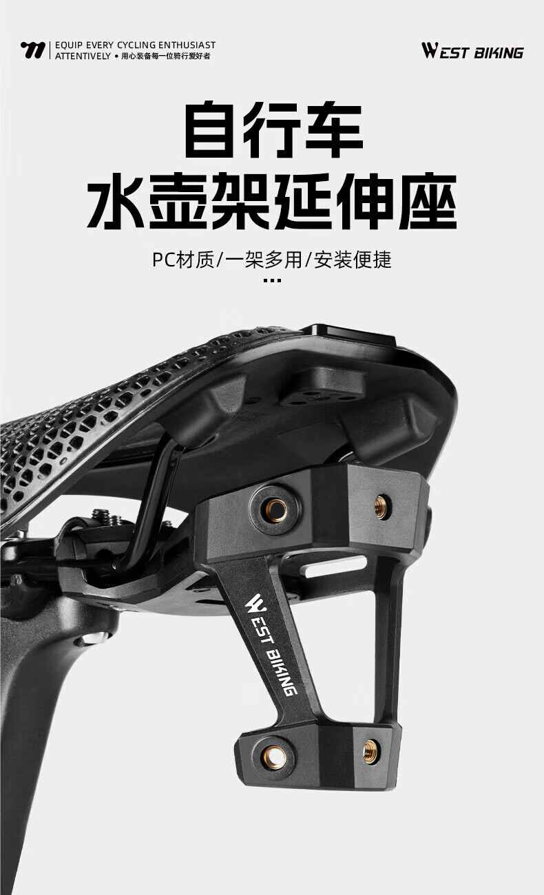 WestBiking Bicycle Water Bottle Cage Extension Seat Conversion Rack Double Water Bottle Integrated Converter Mountain Bike Cycling Water Cup Holder Black