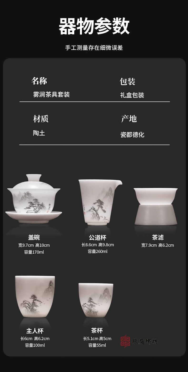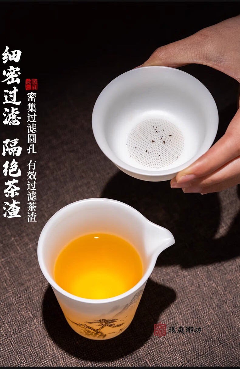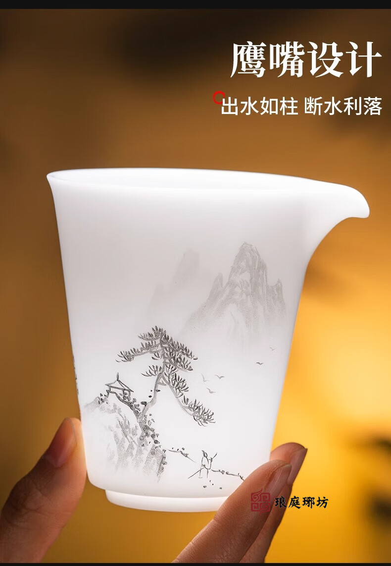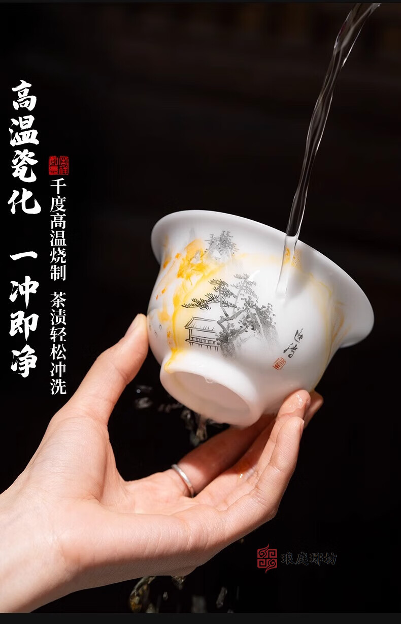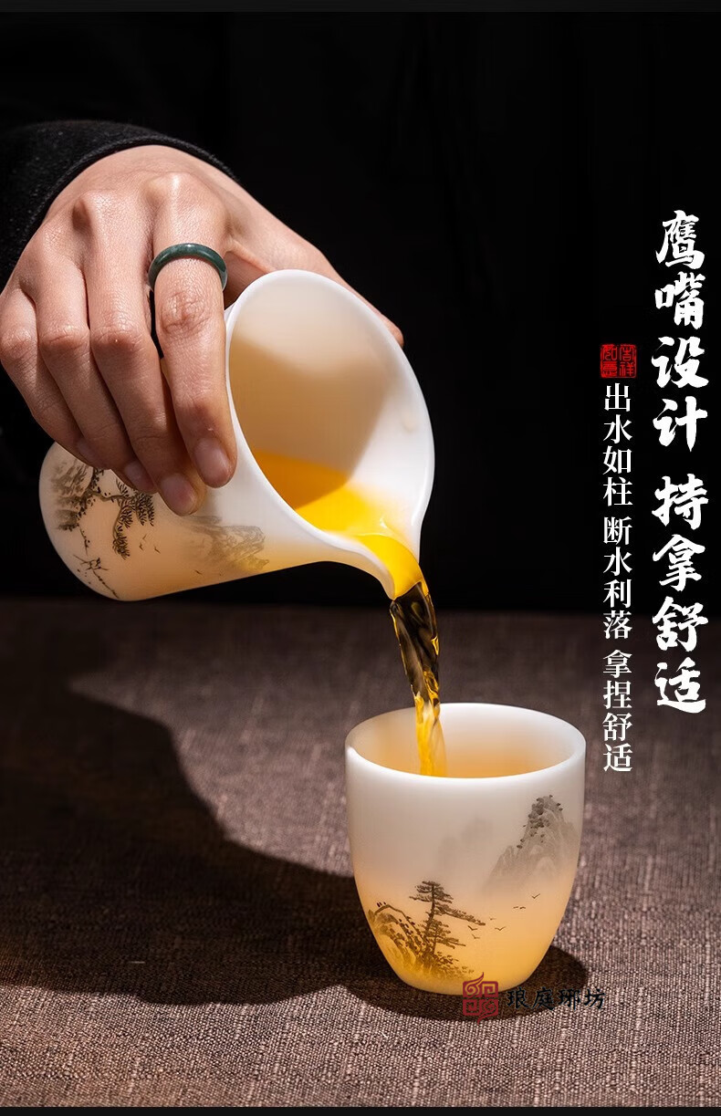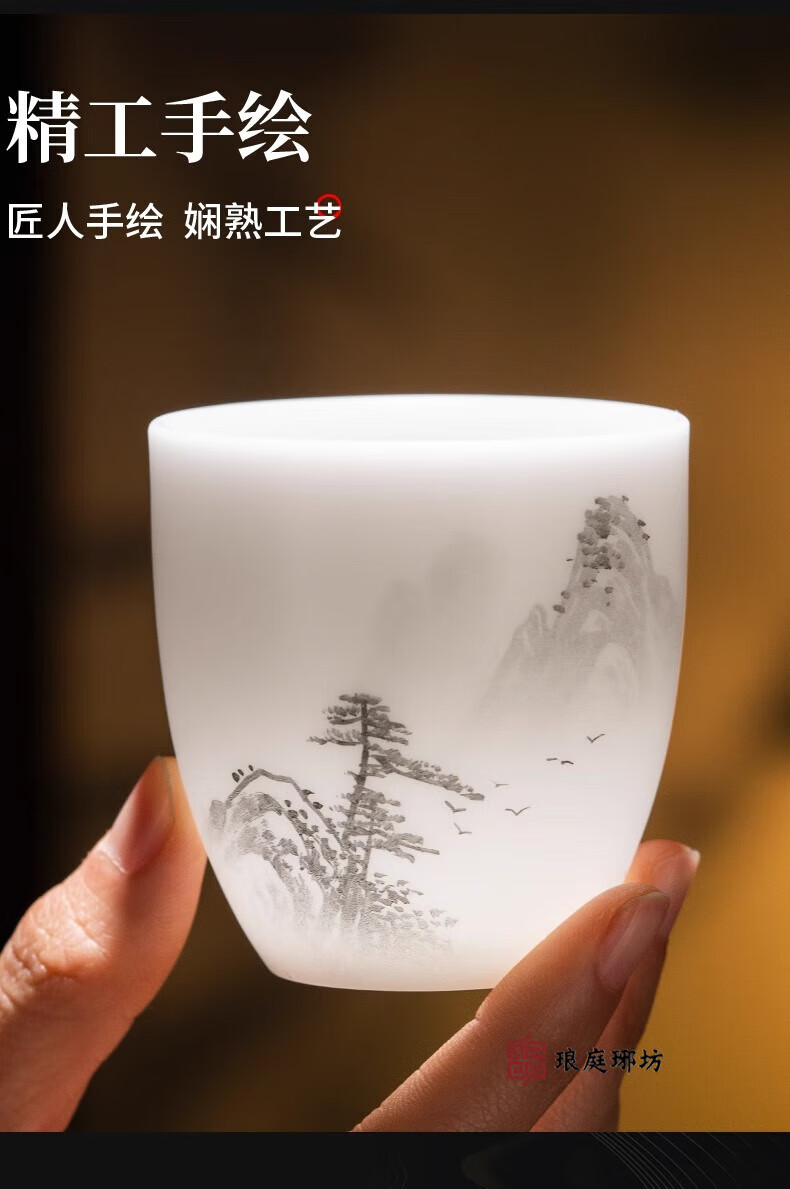 Langting Yafang ice seed mutton fat jade Kung Fu tea set pure hand-painted household cover bowl light luxury ceramic high-end tea cup high-end Wujian hand-painted tea set 1 piece