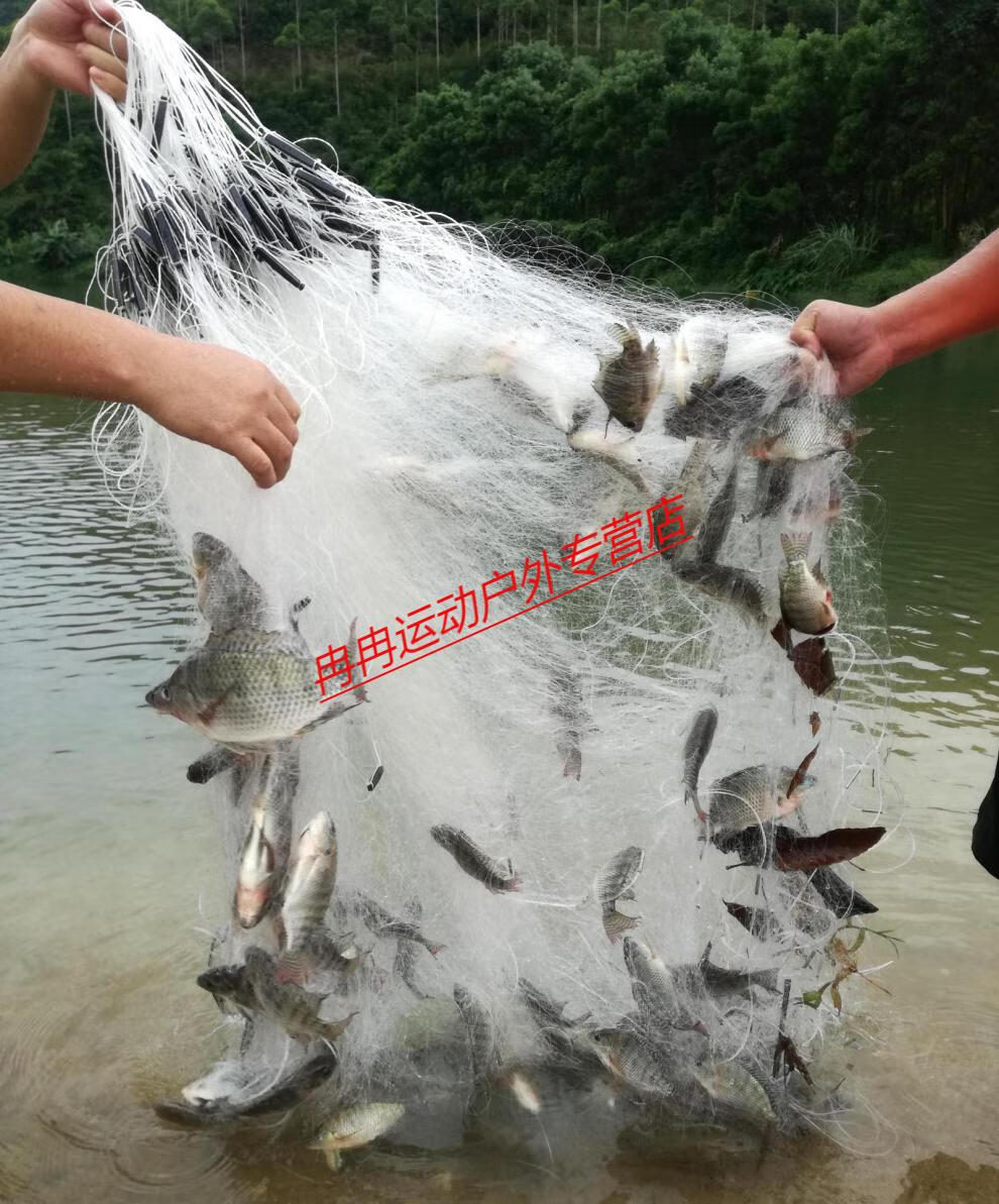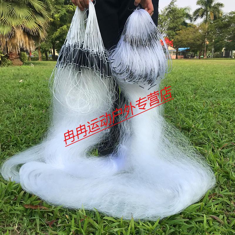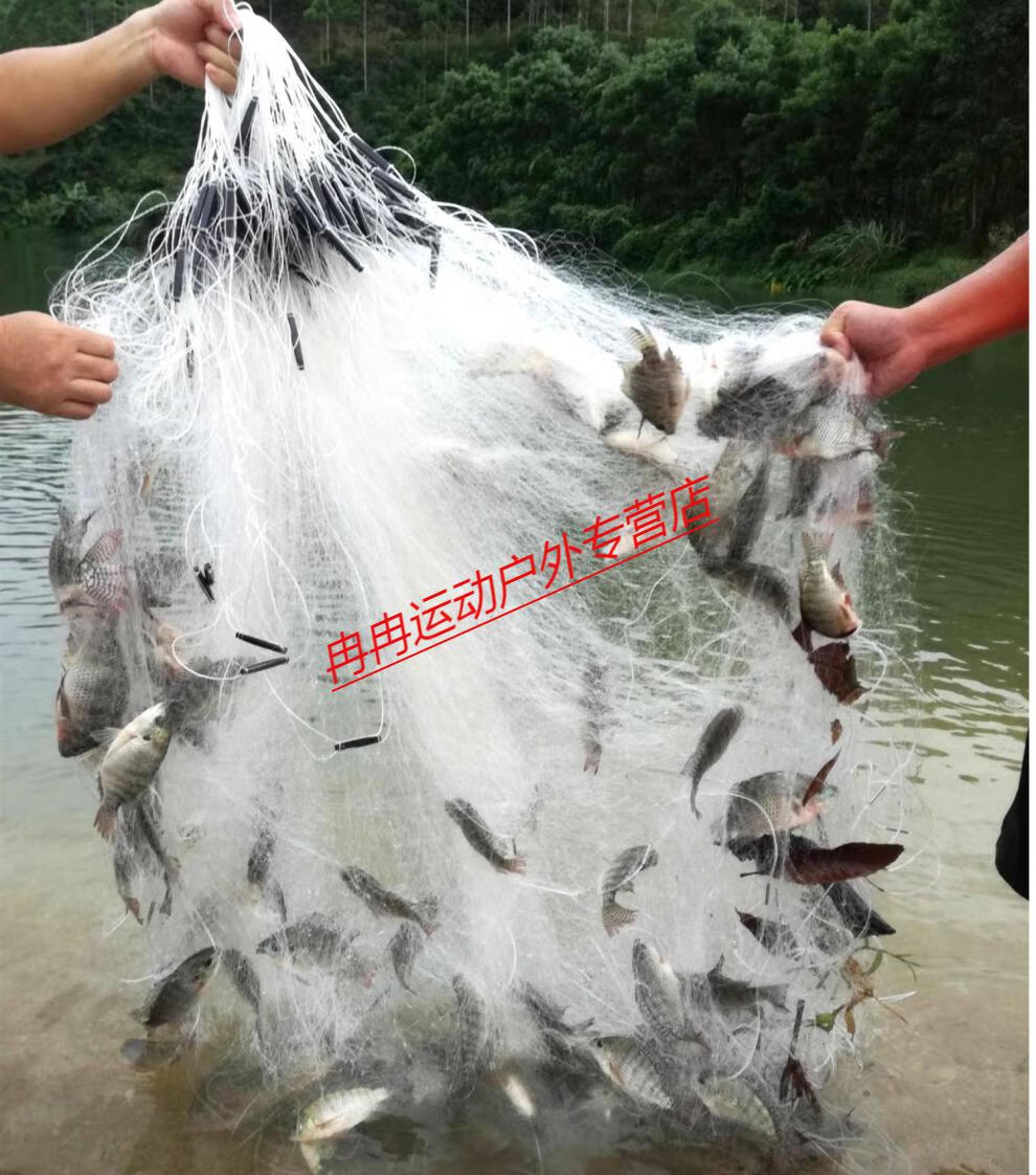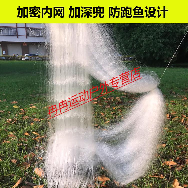 Zhizhou upgraded version of encrypted fishing net fish net three-layer wire mesh fishing hanging sub-net 1 finger white strip sticky fish weighted sinking net brand encrypted three-layer 1.2 meters high 50 meters long 4 finger sinking net