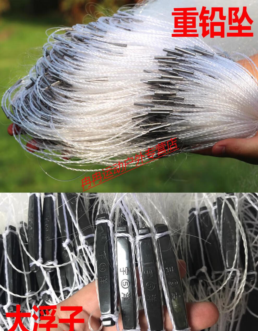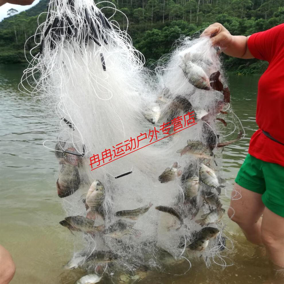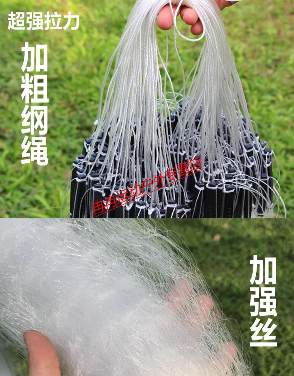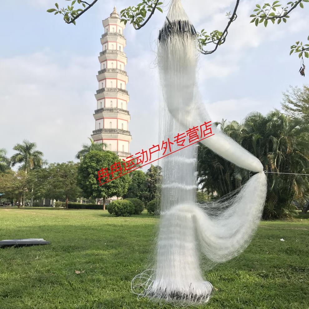 Zhizhou upgraded version of encrypted fishing net fish net three-layer wire mesh fishing hanging sub-net 1 finger white strip sticky fish weighted sinking net brand encrypted three-layer 1.2 meters high 50 meters long 4 finger sinking net
