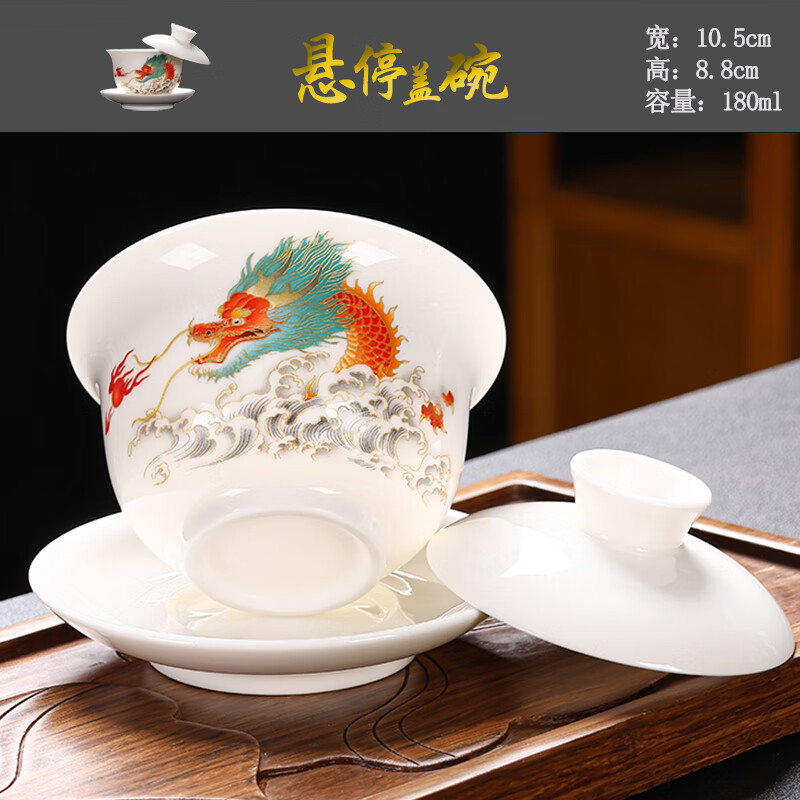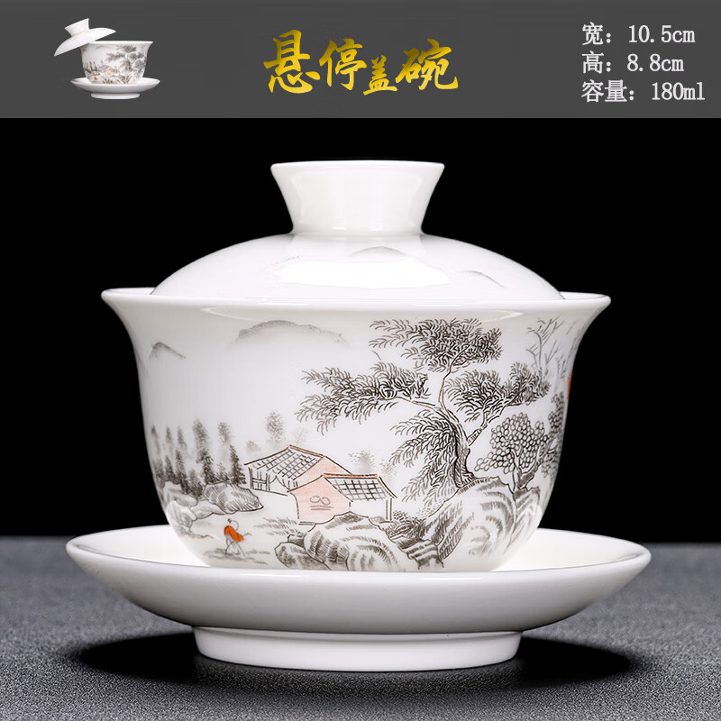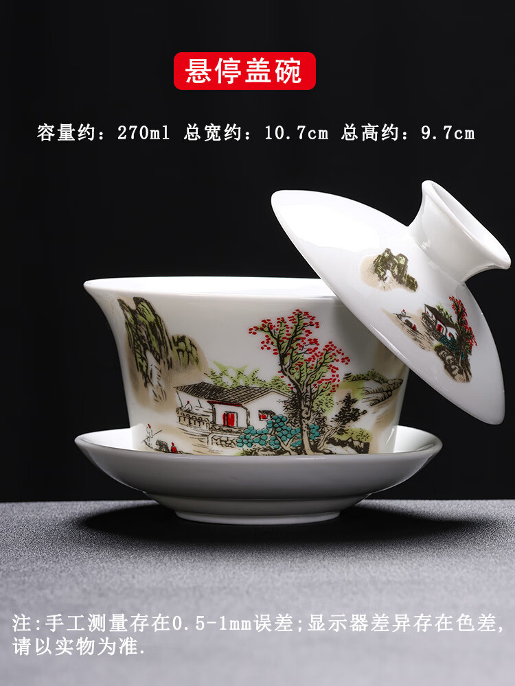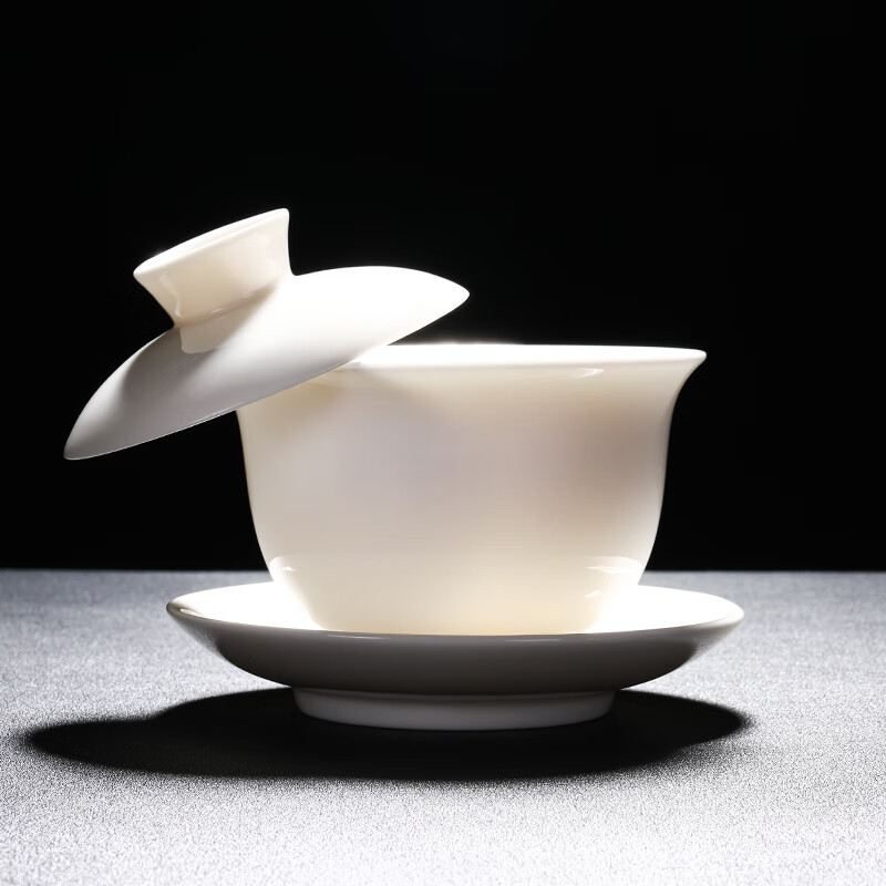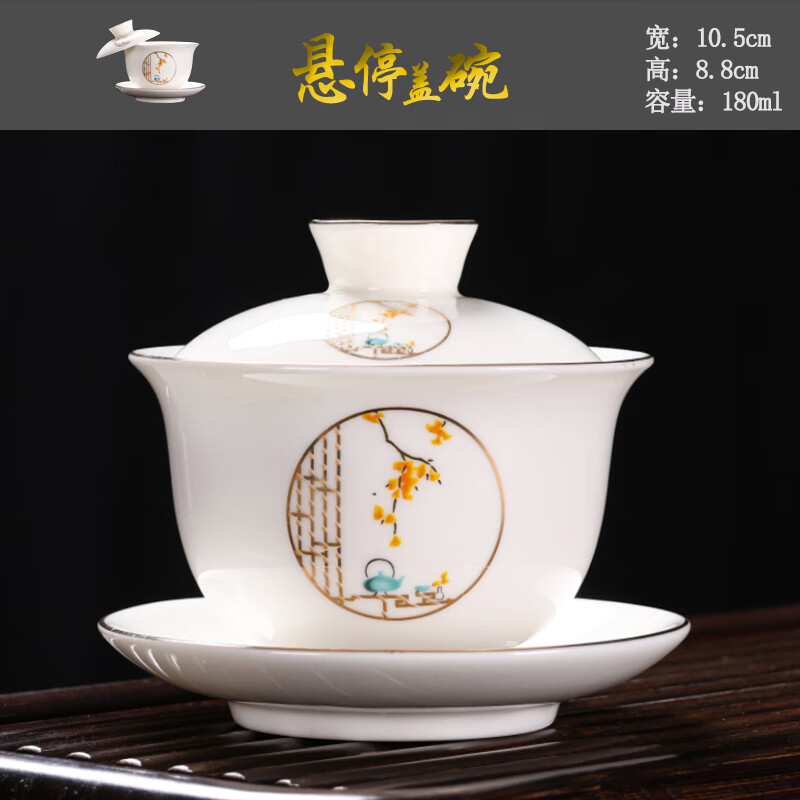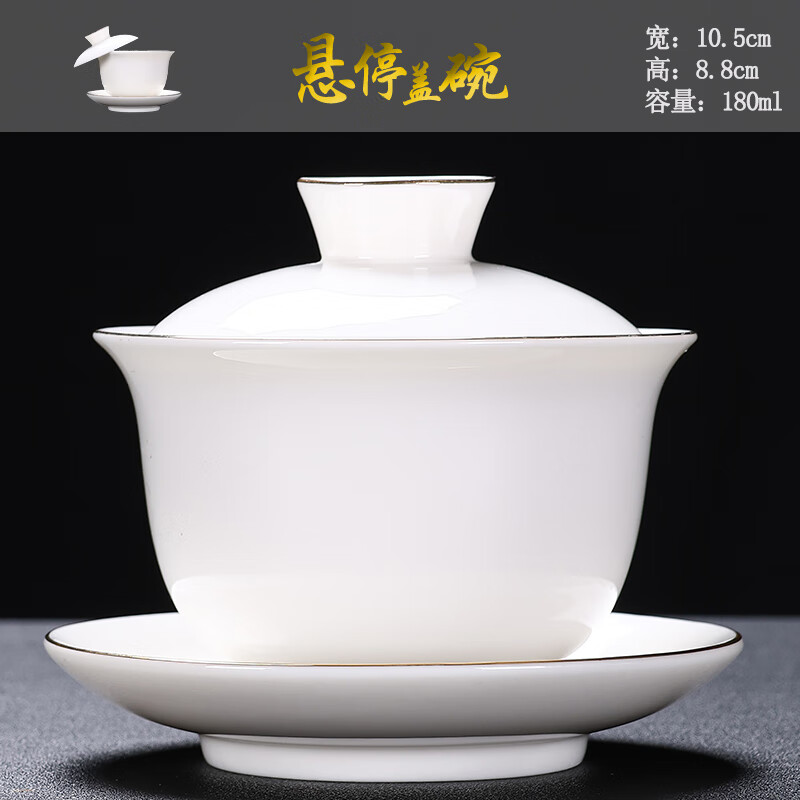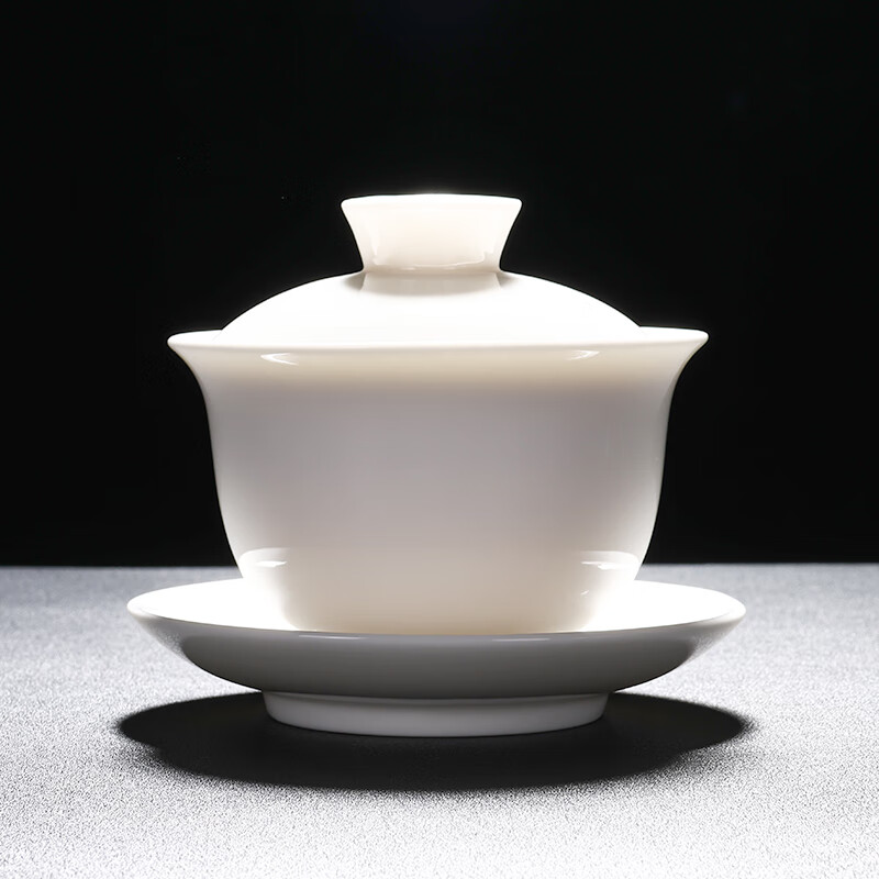 Baolin hovering large tureen suet jade three-cup lid tea bowl tea set single high-end white porcelain hand-held teapot 280ML-large hovering tureen-mutton-fat jade-Fuzhu