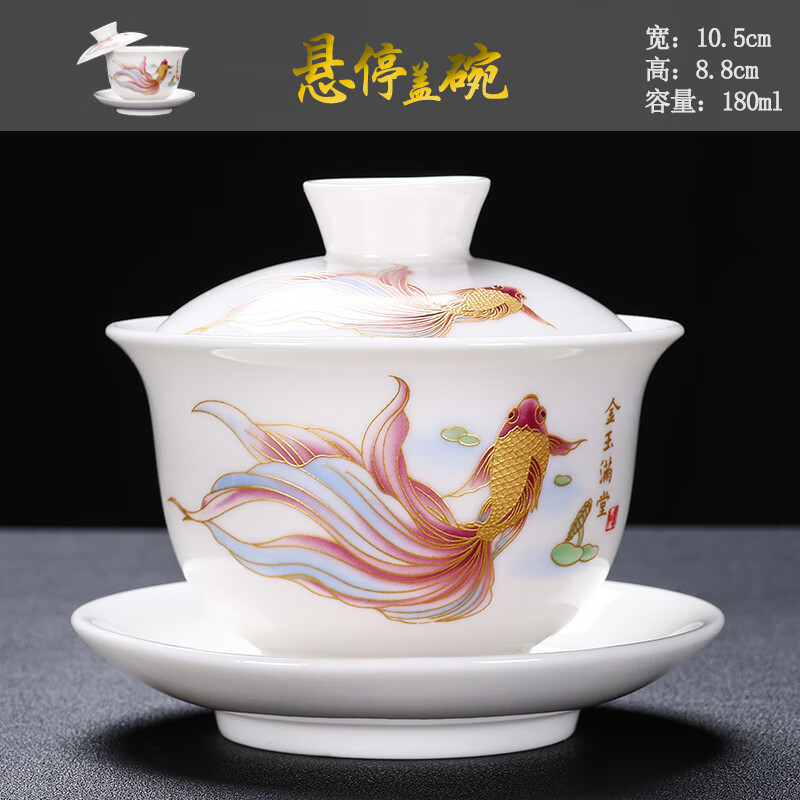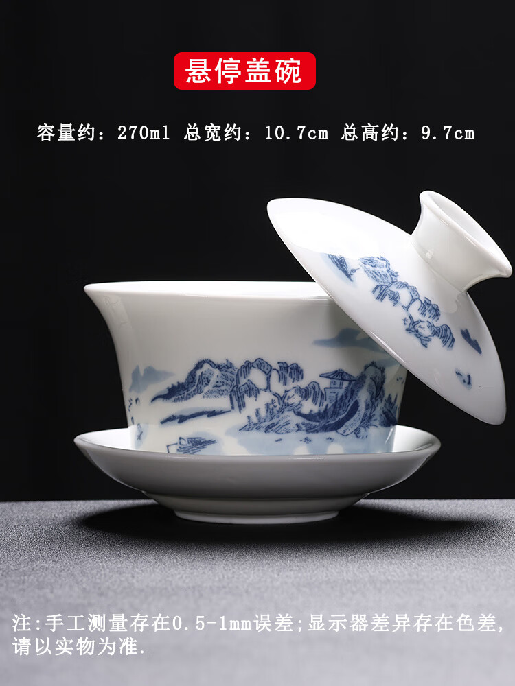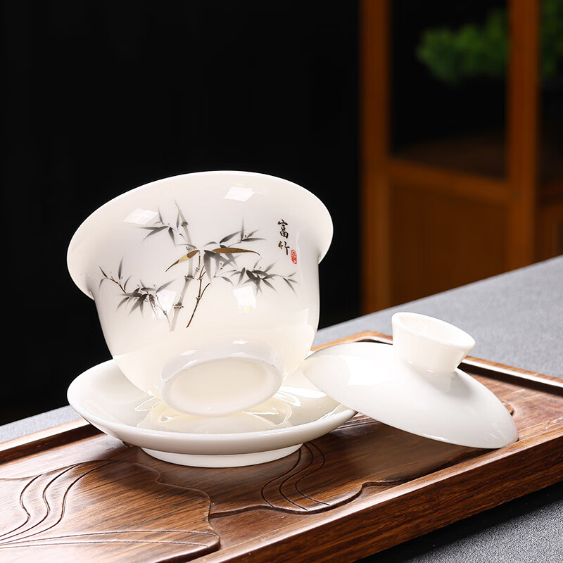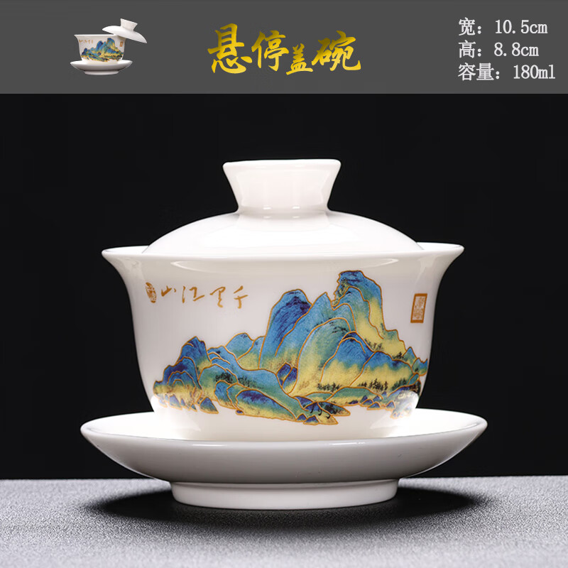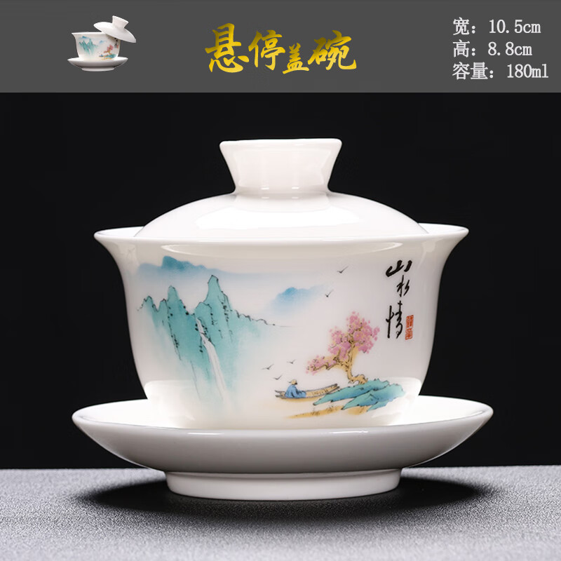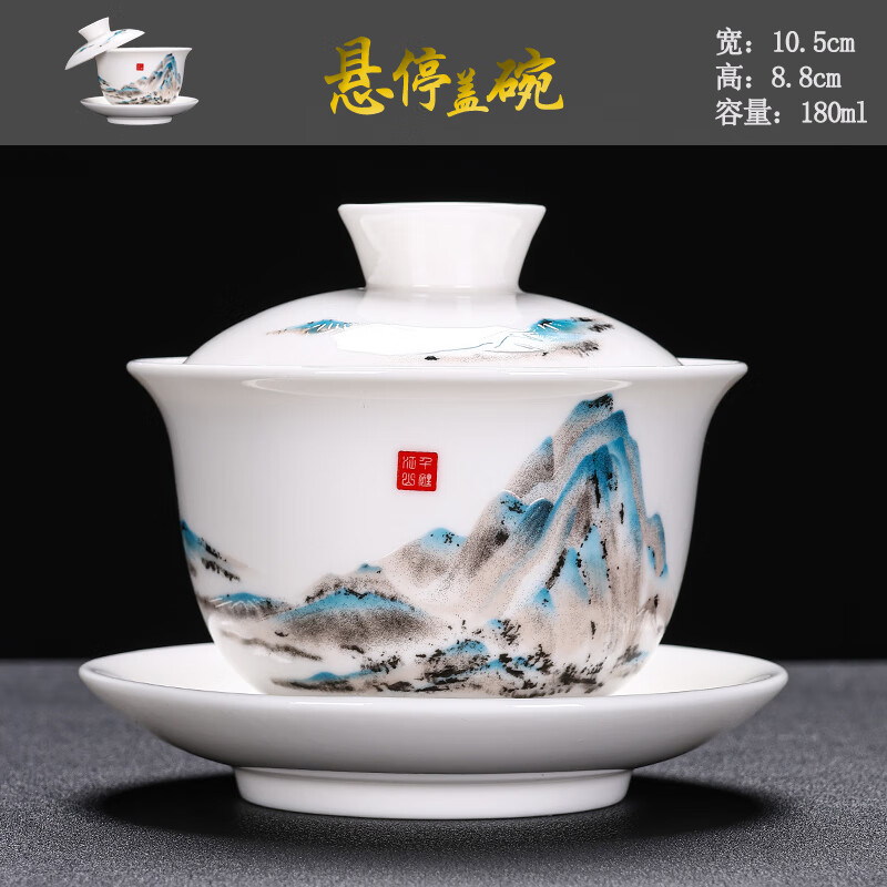 Baolin hovering large tureen suet jade three-cup lid tea bowl tea set single high-end white porcelain hand-held teapot 280ML-large hovering tureen-mutton-fat jade-Fuzhu