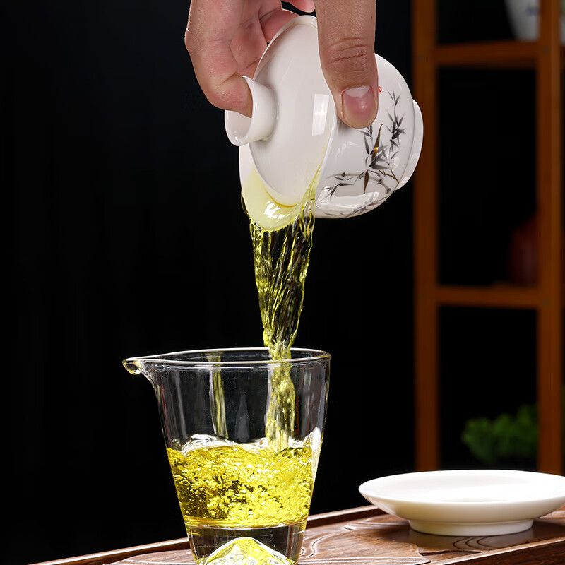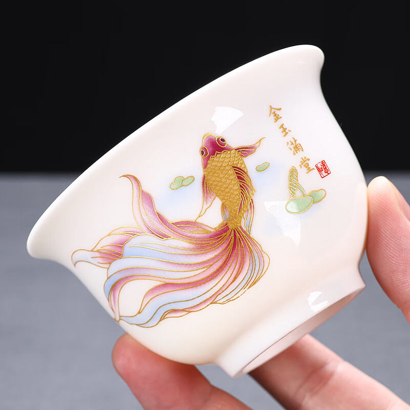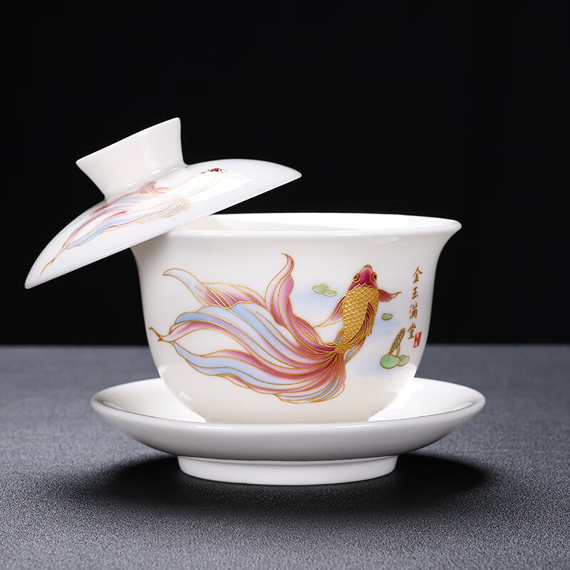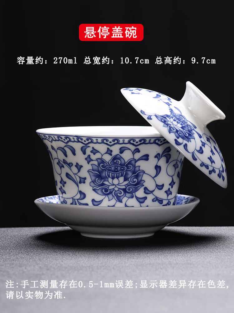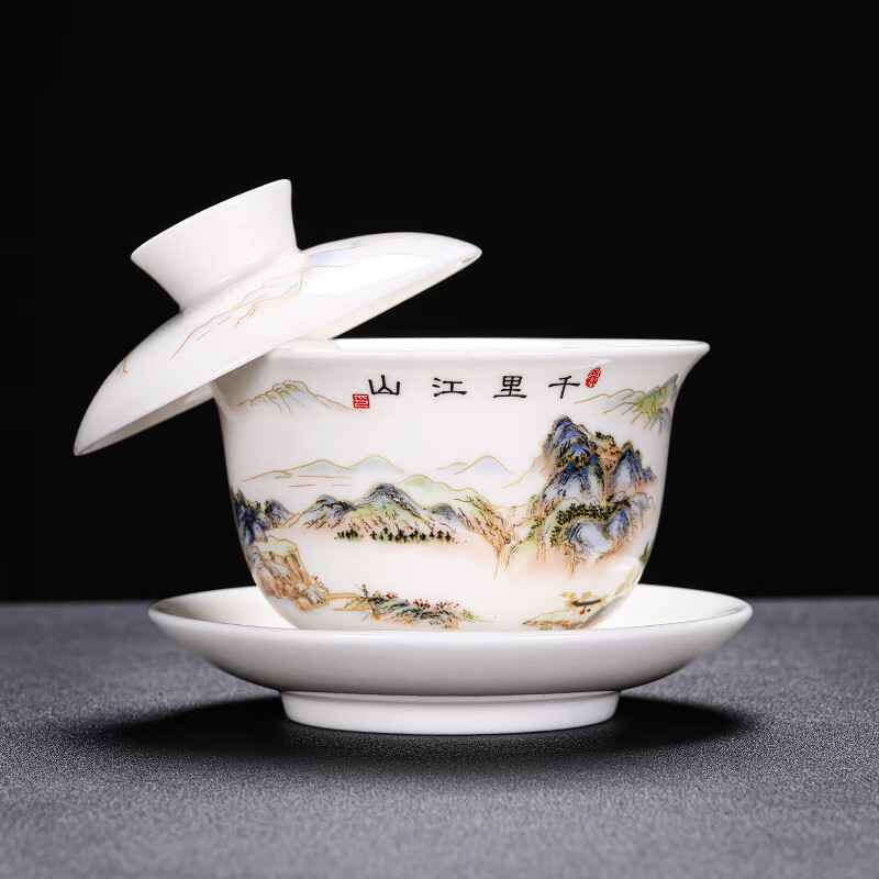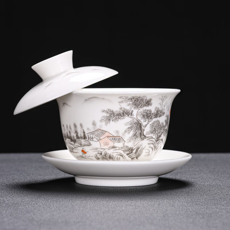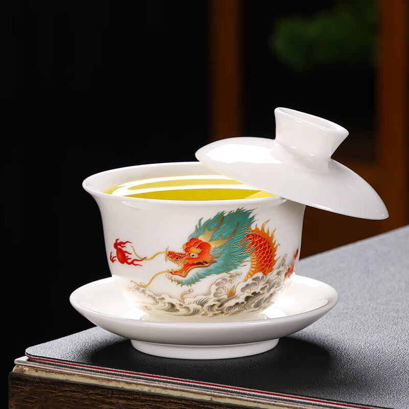 Baolin hovering large tureen suet jade three-cup lid tea bowl tea set single high-end white porcelain hand-held teapot 280ML-large hovering tureen-mutton-fat jade-Fuzhu