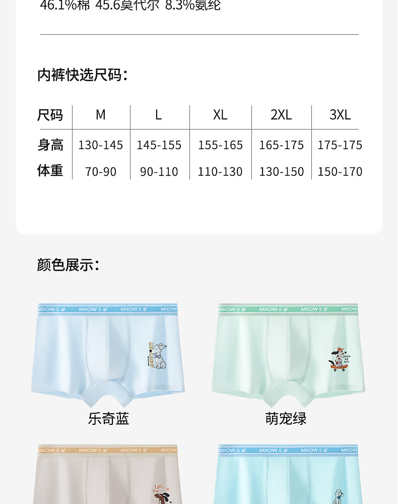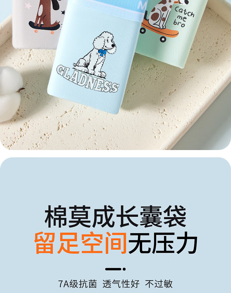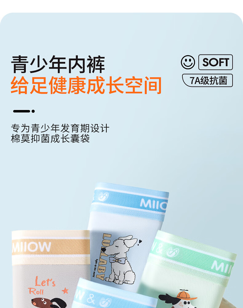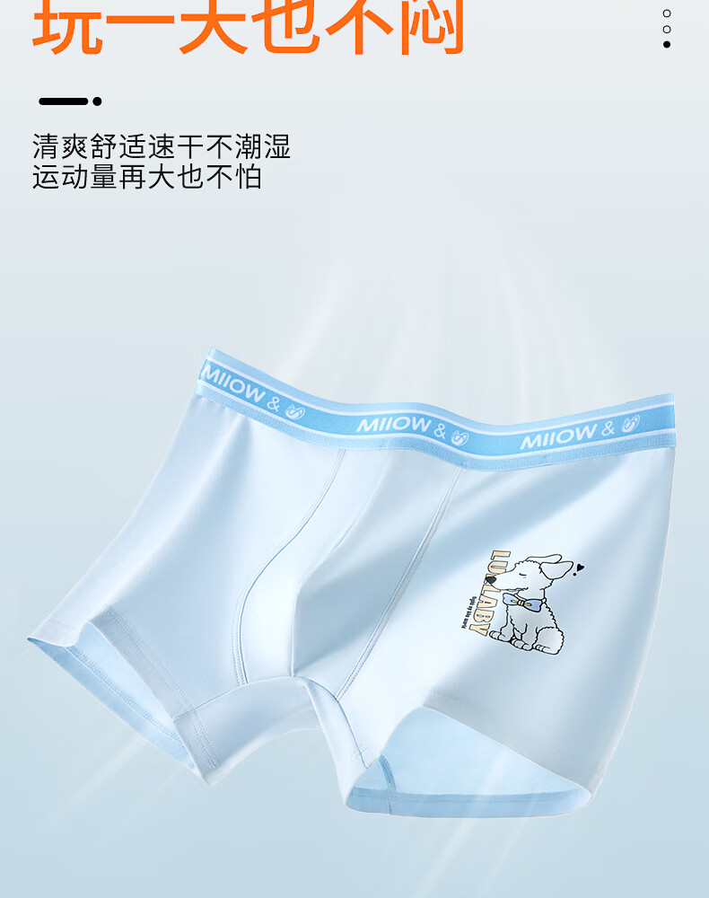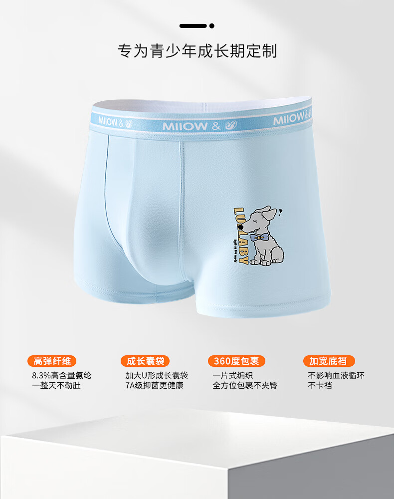 MiiOW Teenage Underwear Boys Development Period Modal Children's Mulberry Silk Antibacterial Boxer Briefs 2025 New Leqi Blue + Cute Pet Green + Menghangmi + Fun Blue 4 Pairs 185 (3XL) Recommended Weight 150-170 Jin Jin is equal to 0.5 kg