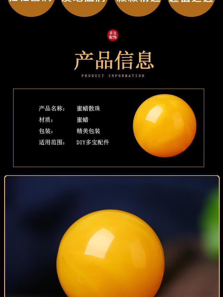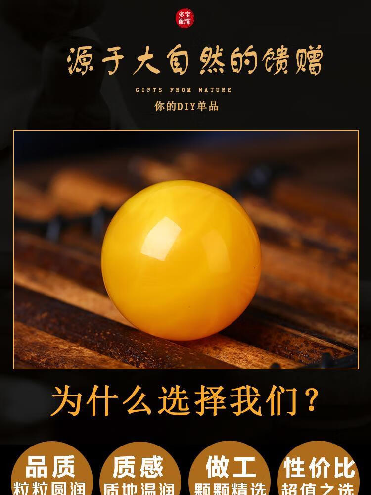 Jinqi natural amber beeswax single bead, round bead, loose bead, non-optimized chicken oil yellow Buddha beads, bracelet spacer beads, DIY accessories with beads, 10MM chicken oil yellow each