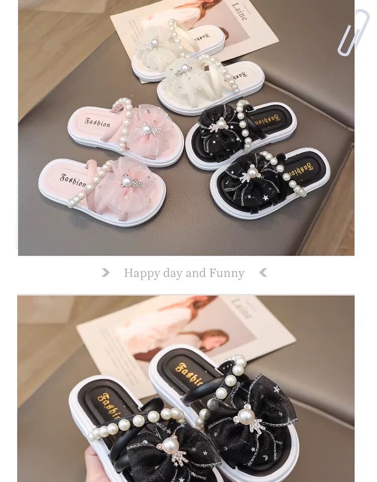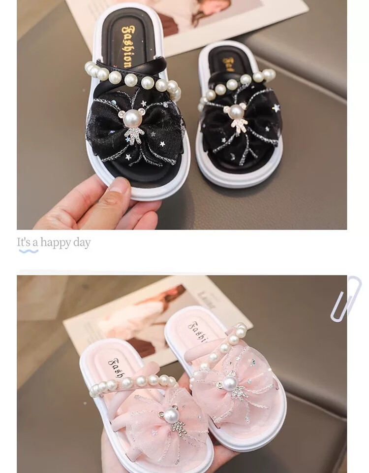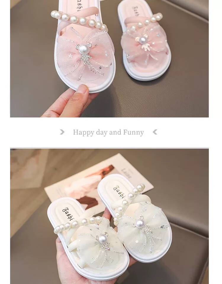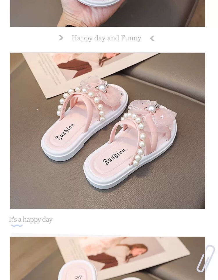 G.duck cute children's slippers summer new style girls super cute soft bottom indoor non-slip beach vacation baby wear-resistant slippers bear diamond disc - pink 30-31 size, suitable for feet 18cm long