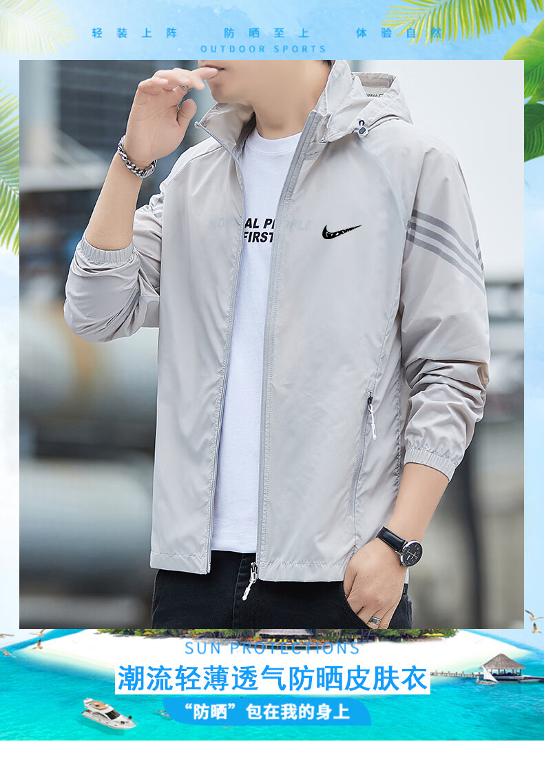 Sun protection clothing men's summer thin coat lightweight new breathable anti-UV ice silk fishing sun protection clothing men's quick-drying light gray 2XL