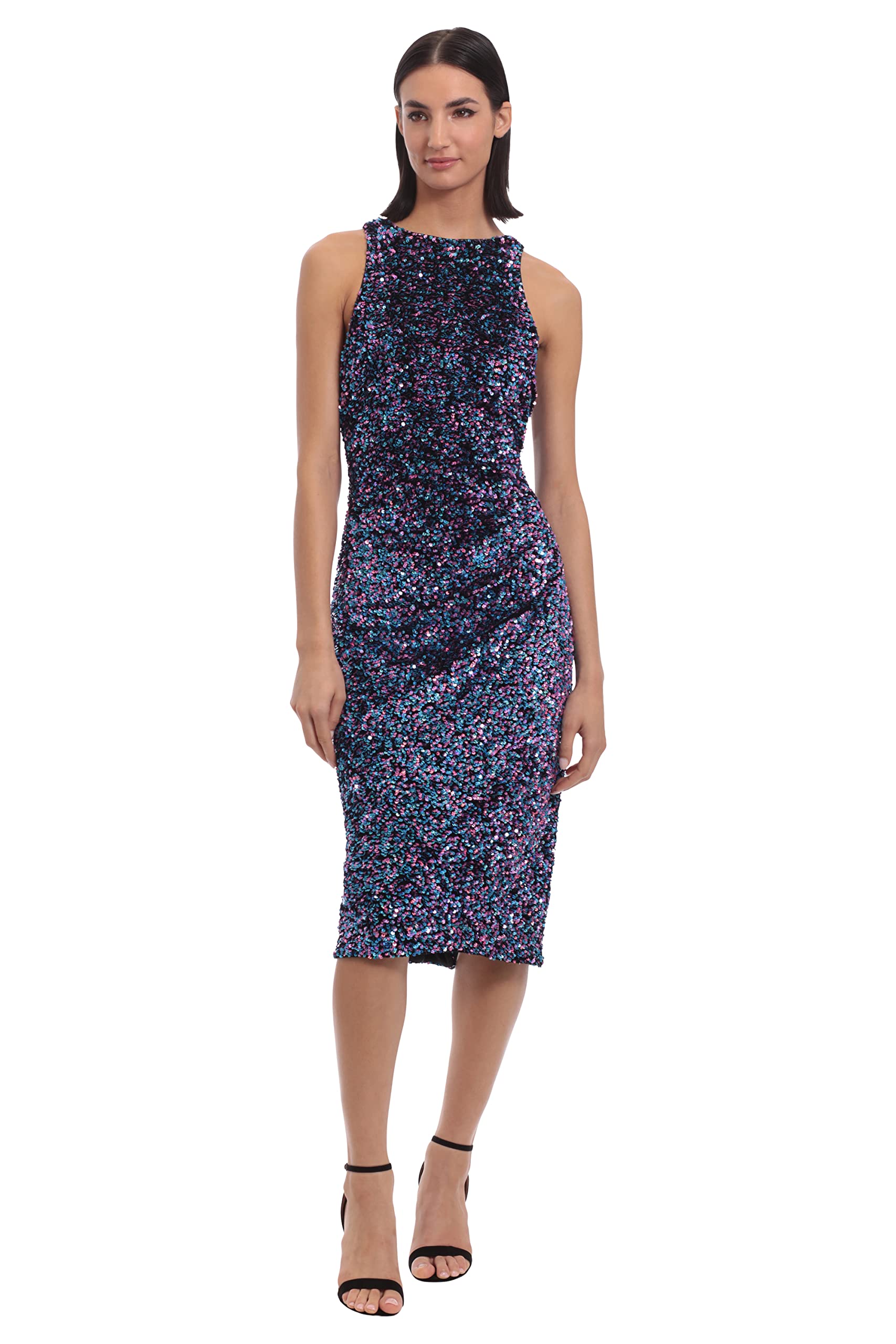 Donna Morgan Women's Sleeveless Vest Sequin Dress Black/Silver/Dark Blue 0