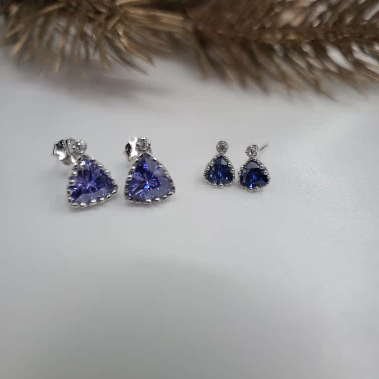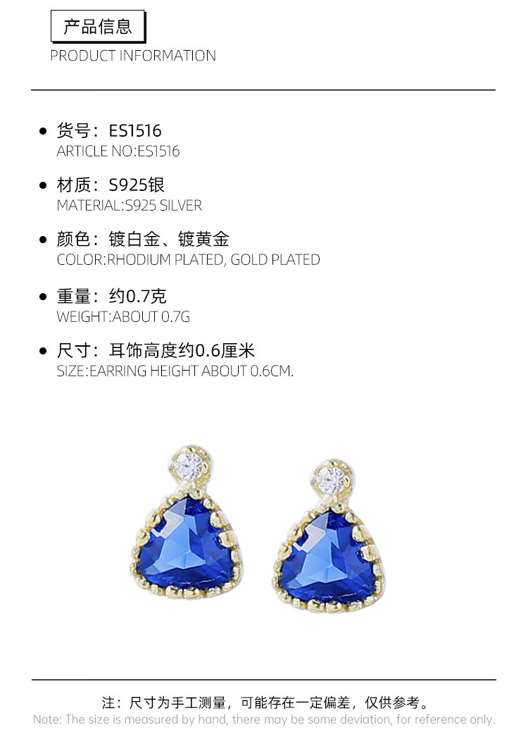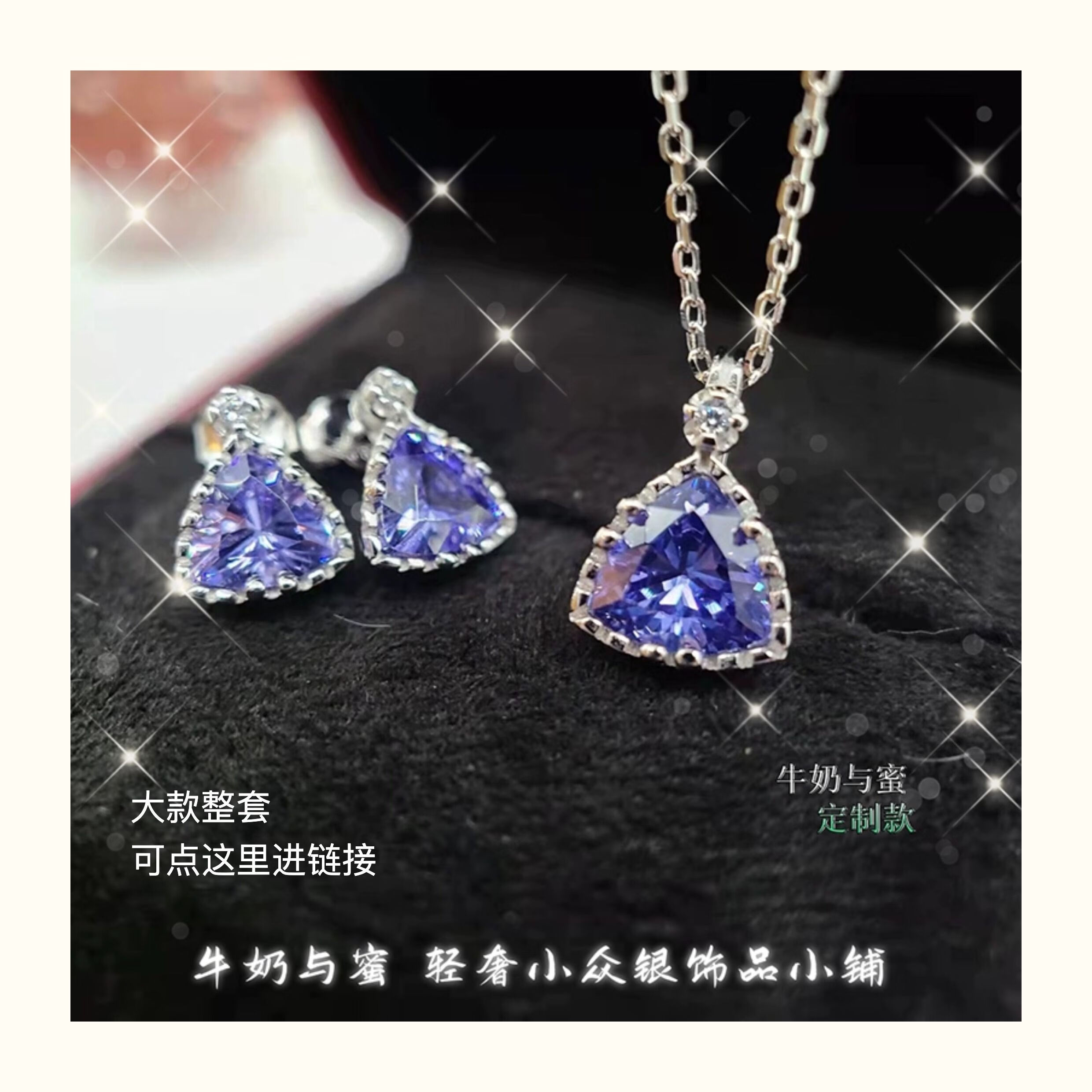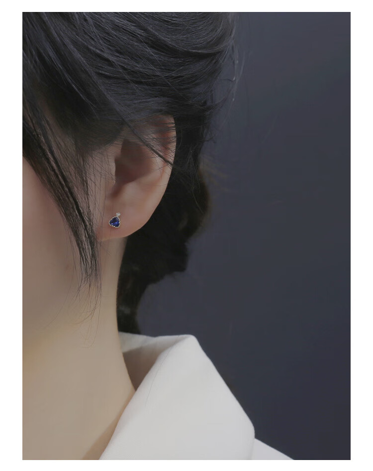 Mori uses earrings sterling silver women's sapphire tanzanite earrings niche design cool style Versailles versatile mesh earrings sapphire blue gold pair