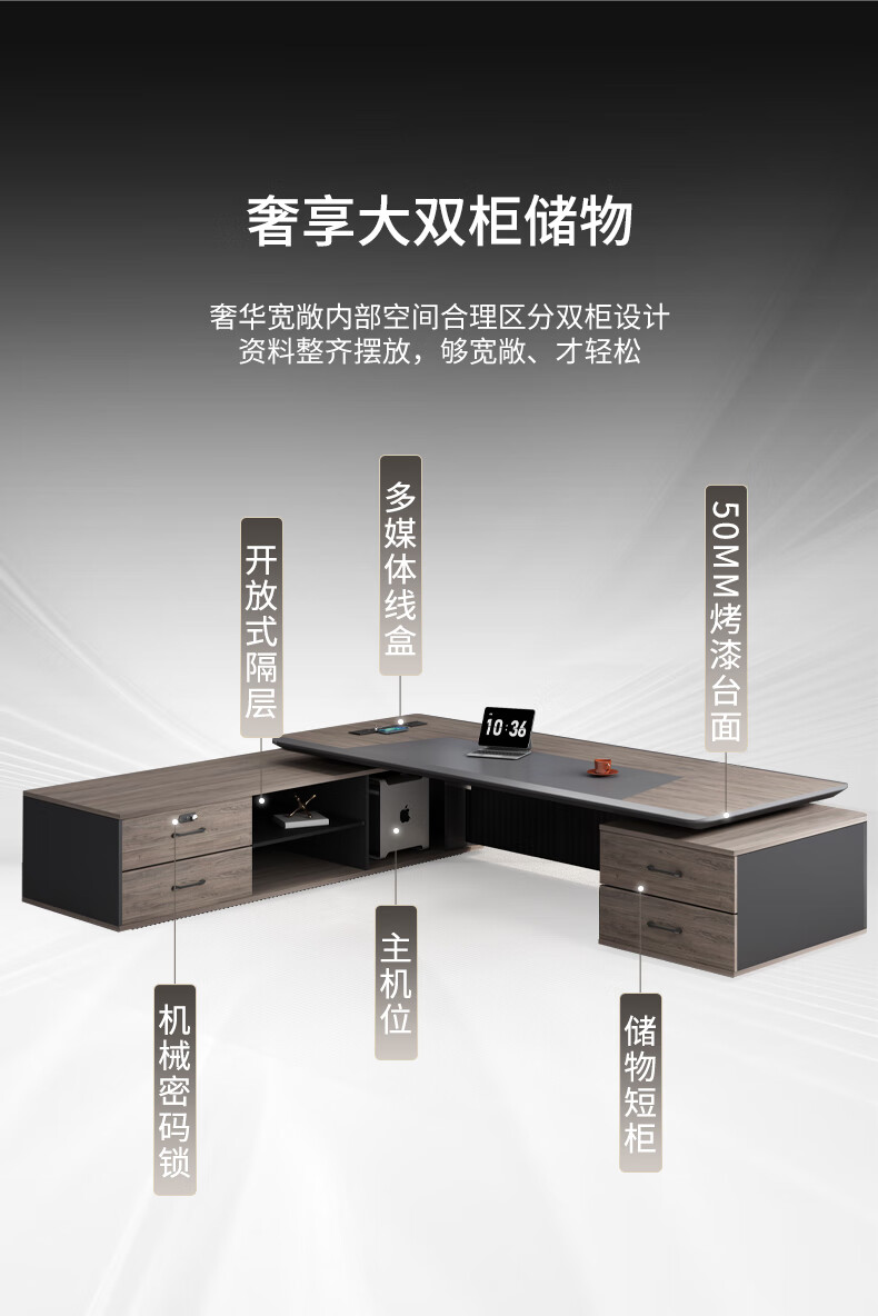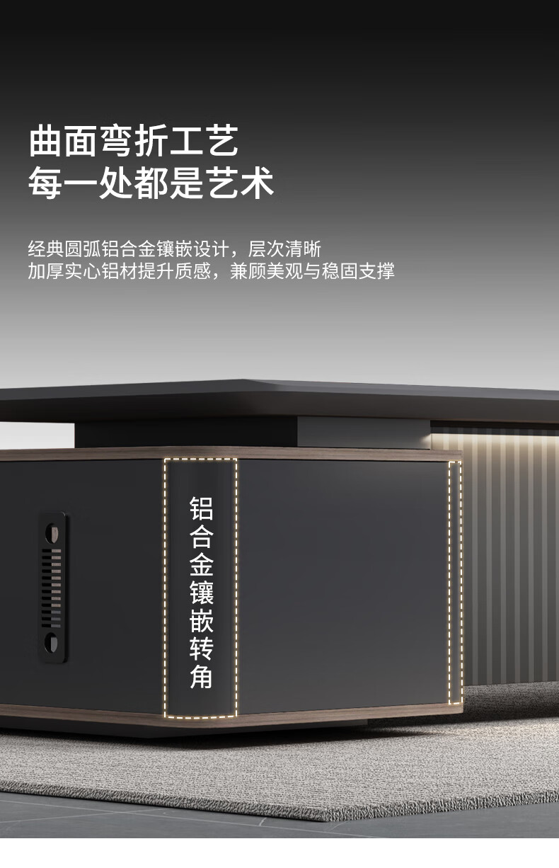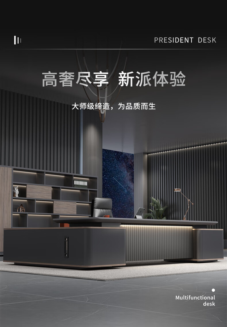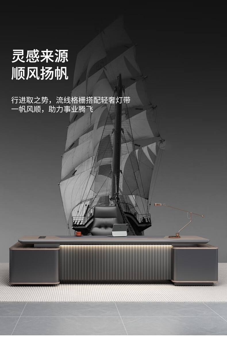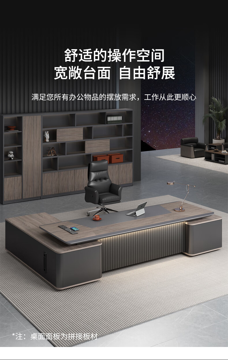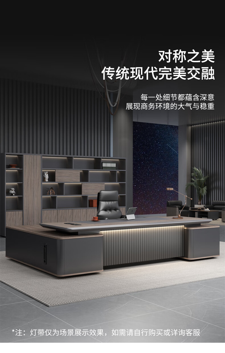 Yanhong boss desk desk light luxury high-end president office desk and chair combination simple modern executive desk executive desk 2.4 meters painted boss desk (including light strip)