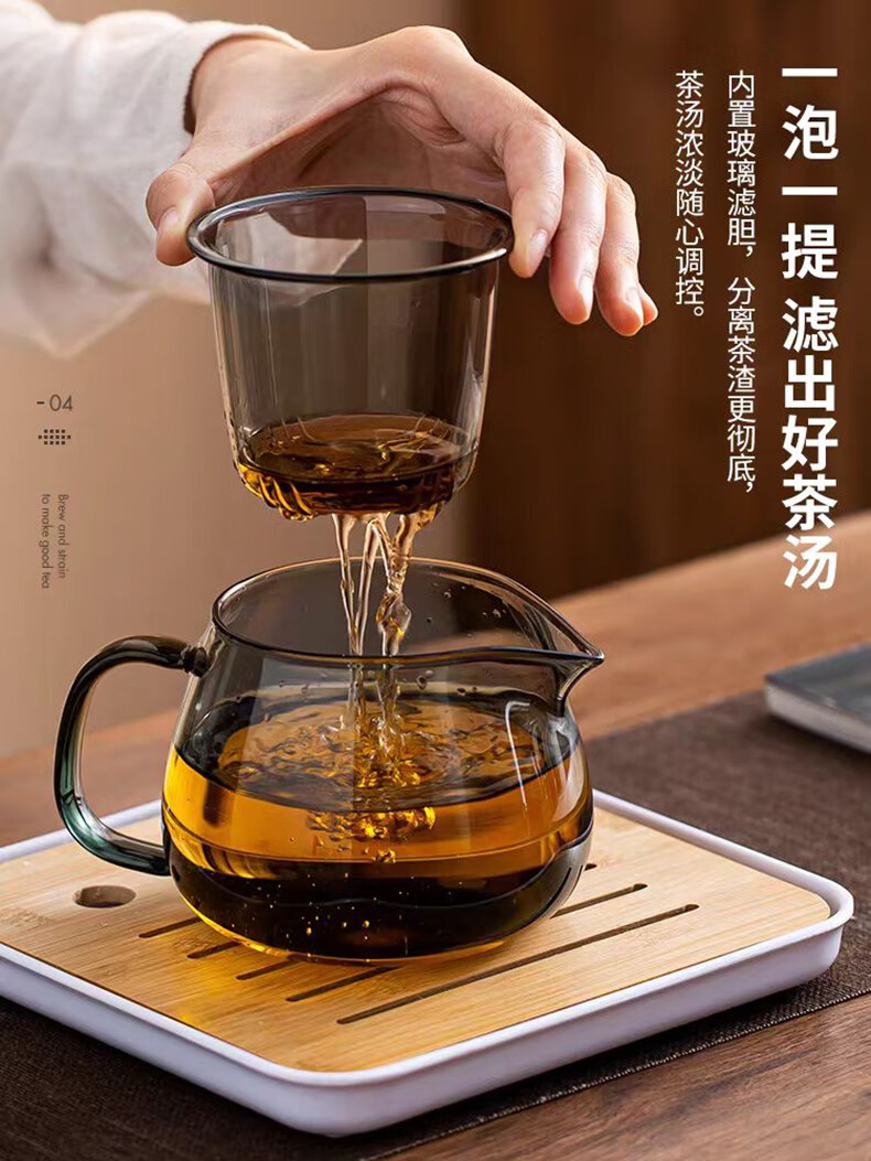 Penguin teapot heat-resistant glass teapot teacup tea water separation kettle filter kettle tea set Penguin teapot gray heat-resistant and explosion-proof 500ml