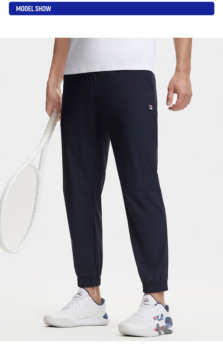 FILA moisture-absorbent quick-drying/cooling men's sweatpants men's basic ice silk dry tennis cuffed knitted trousers RD Sapphire Blue M