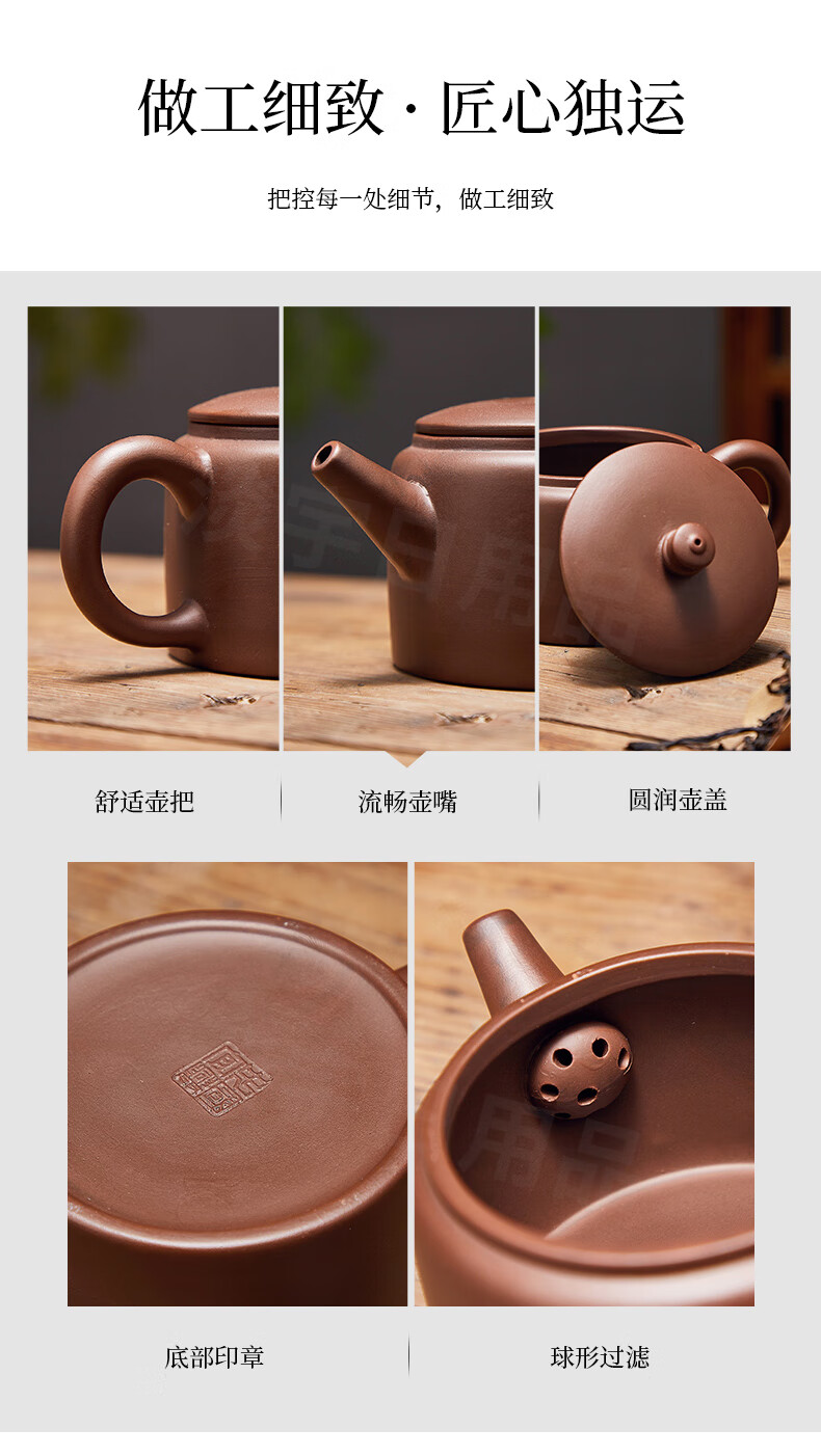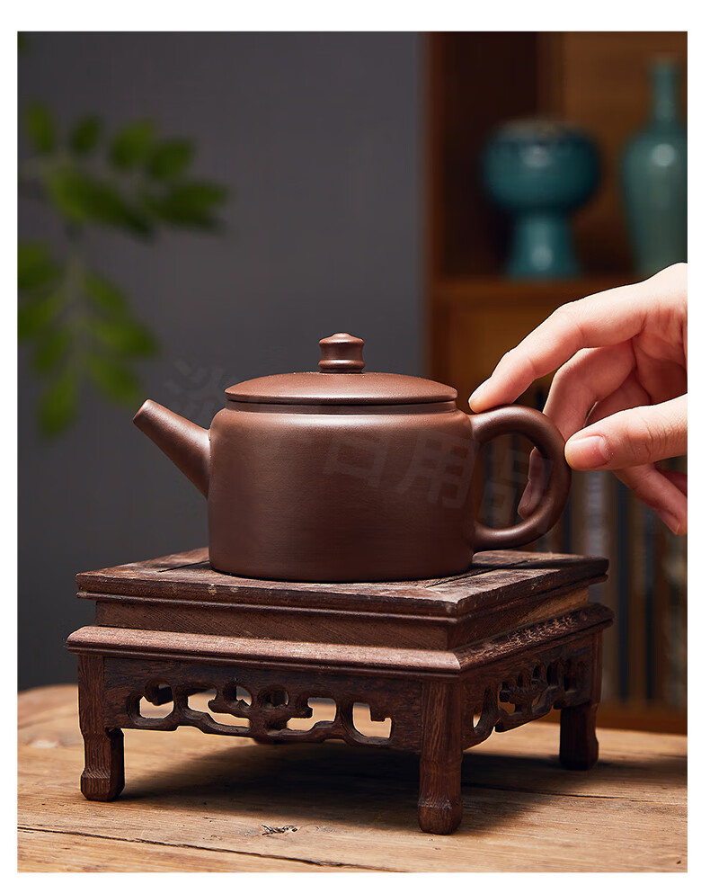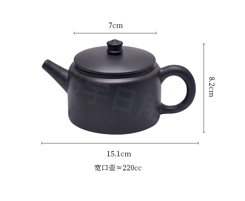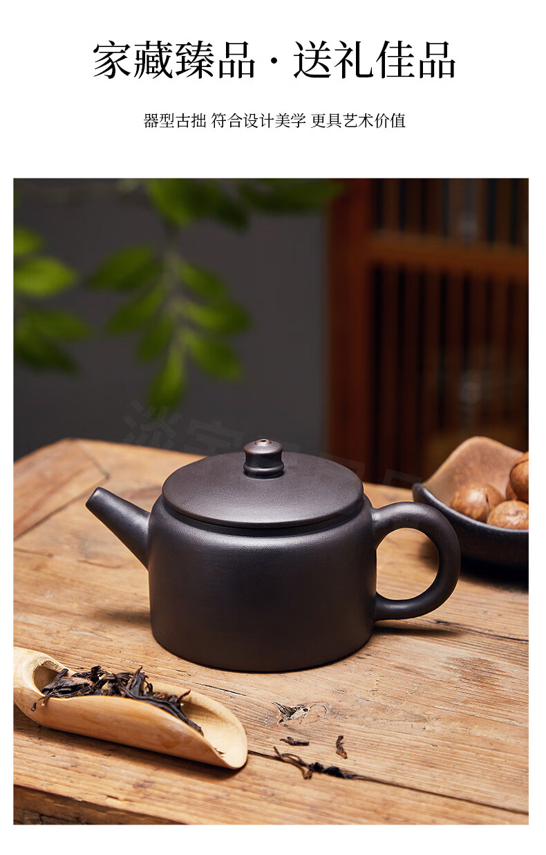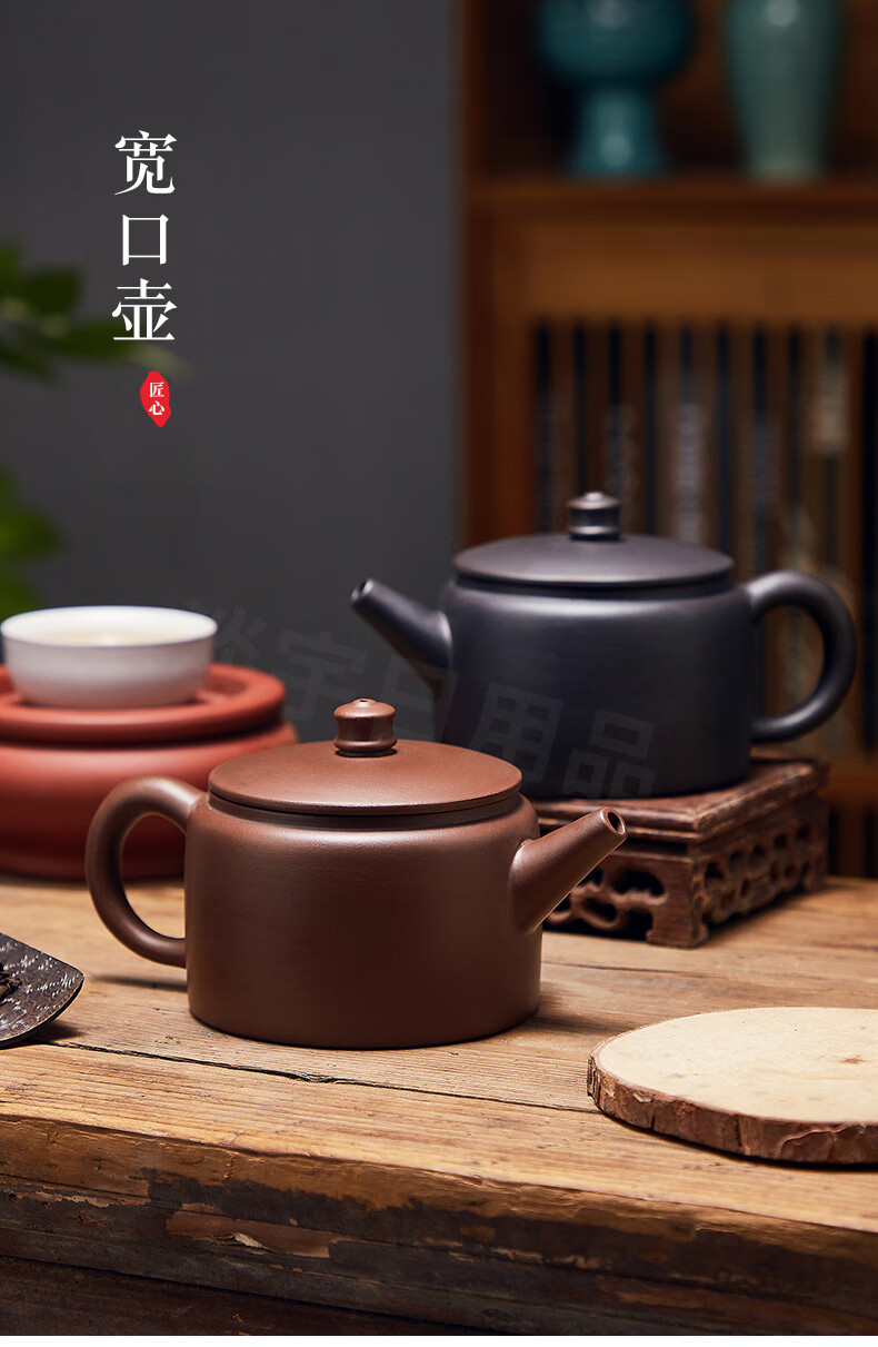 Fat Donglai's same style purple clay teapot, wide mouth teapot, open mouth teapot, wide mouth Kung Fu tea set, large capacity Zhuni, black Hanwa teapot (+ kettle rope) 200ml