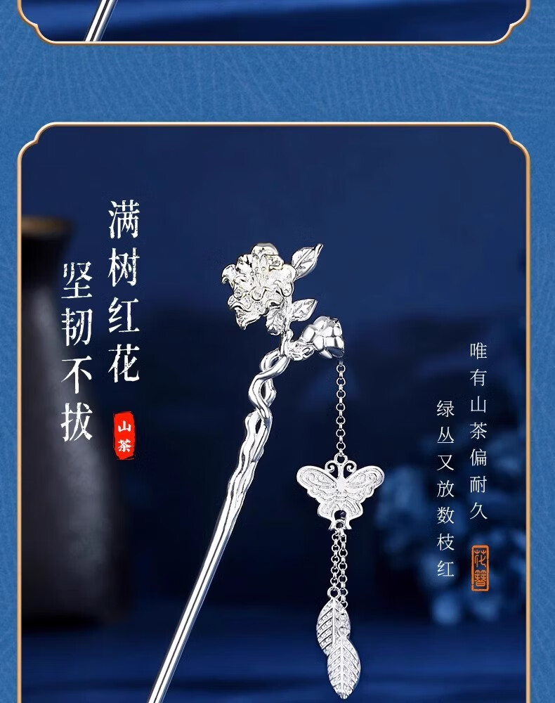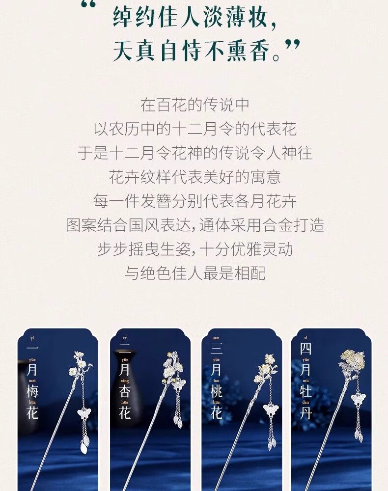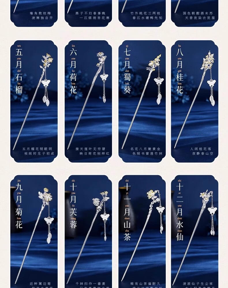 Twelve Flower Gods 925 Full Silver Hair Hairpin Ancient Style Hanfu Solid Silver Hair Hairpin for Girlfriend and Bestie Birthday Gift January Plum Blossoms Faithful Love Certificate Gift Box 1