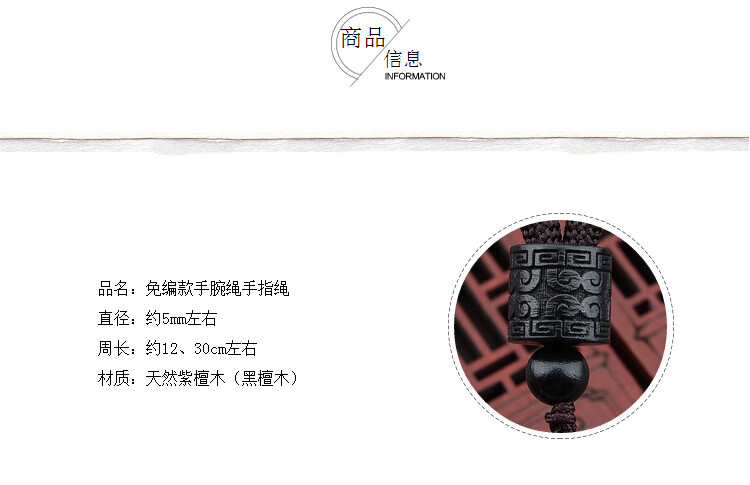 Fat Donglai's same style handlebar lanyard free of braiding sandalwood rope embossed Ruyi finger rope car key chain anti-lost black wrist rope circumference about 30cm