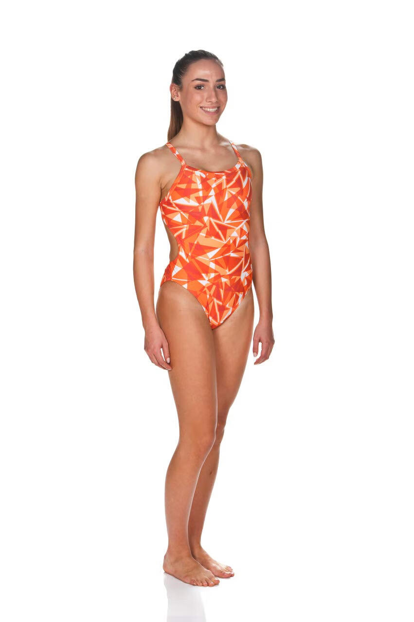 Arena Women's Challenge Back One-piece Swimsuit Polyester Material Sleeveless Design Professional Training Fluorescent Red 26