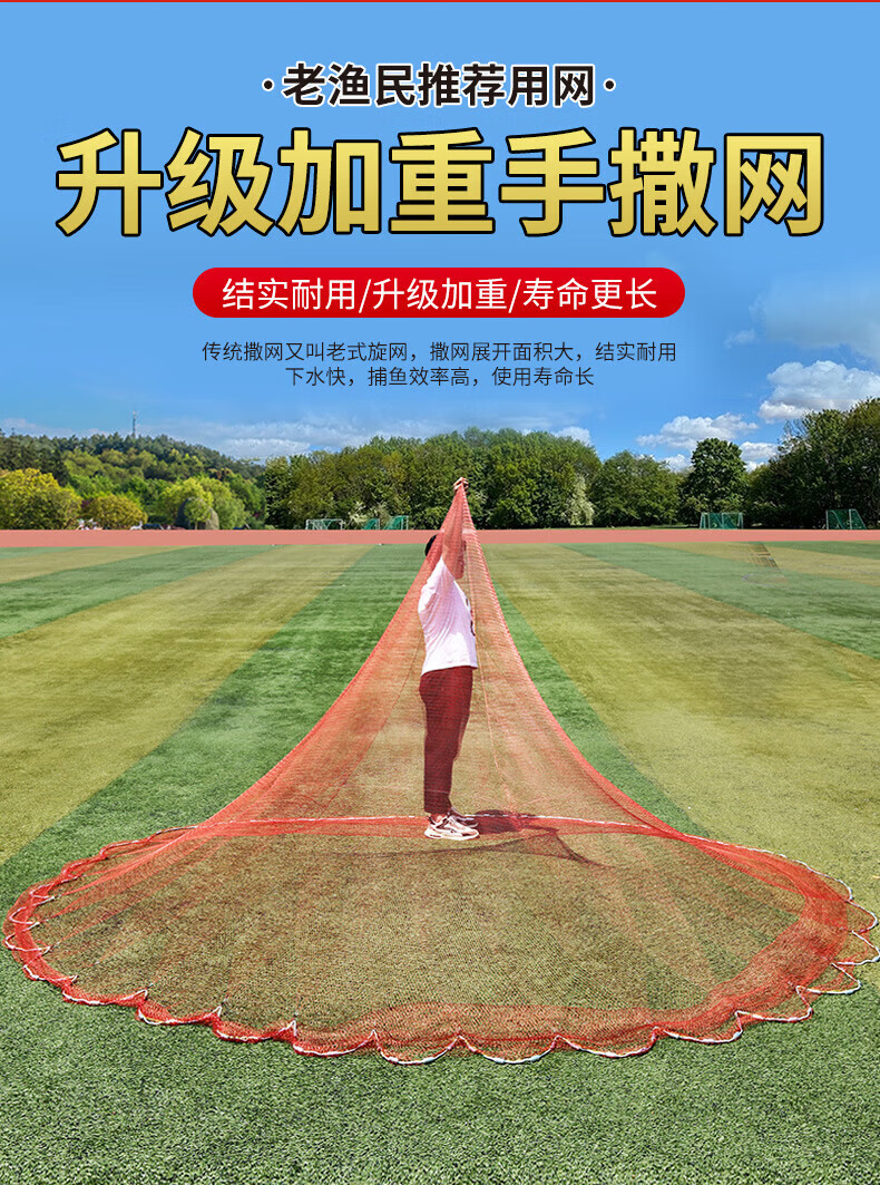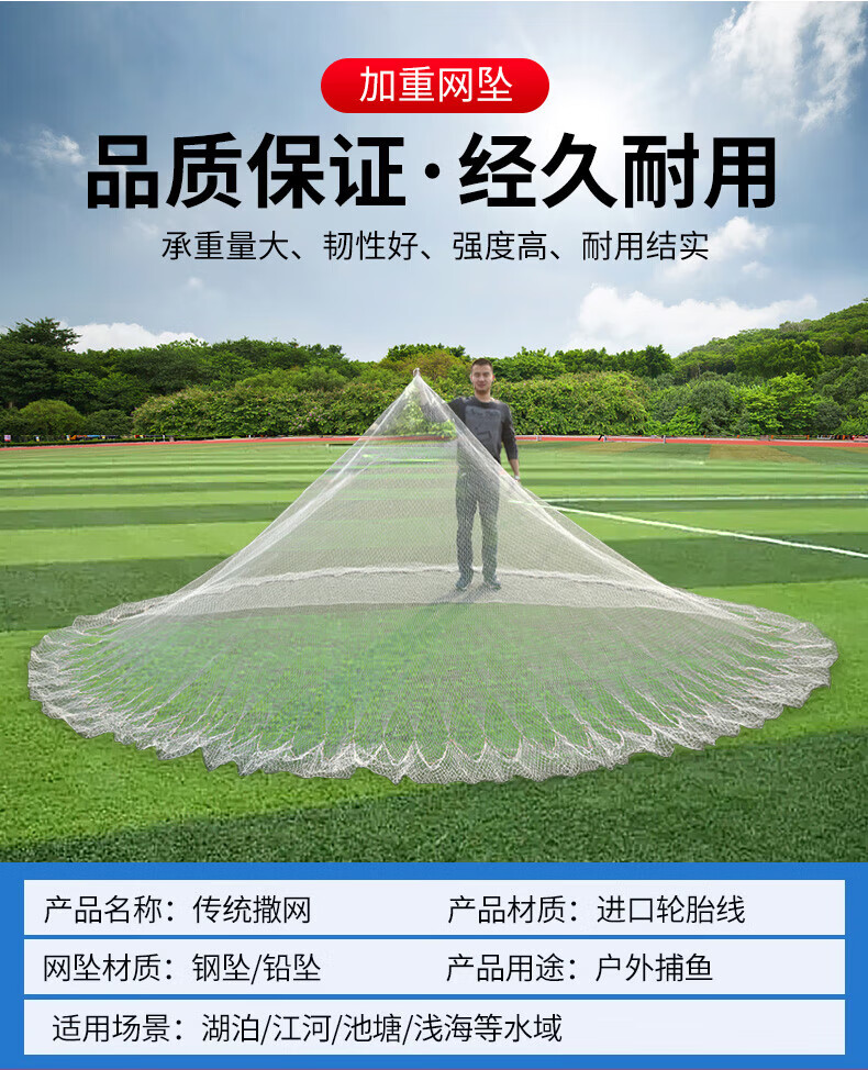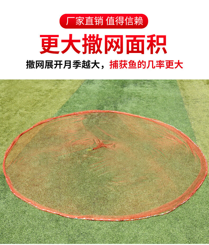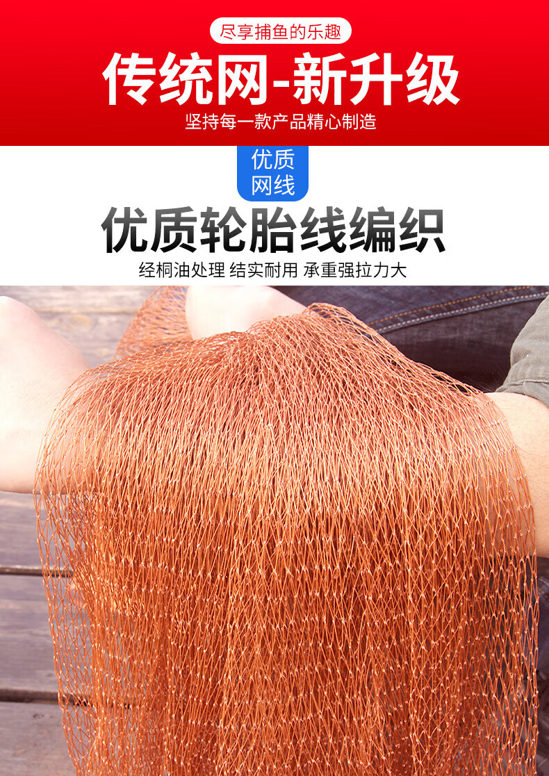 Zhanliu traditional tire line hand cast net hand throw net fishing net spin net old cast net fishing net hand throw fishing net catch fish net nylon line 2.5 meters high 1 finger steel pendant 3.5 Jin Jin is equal to 0.5 kg