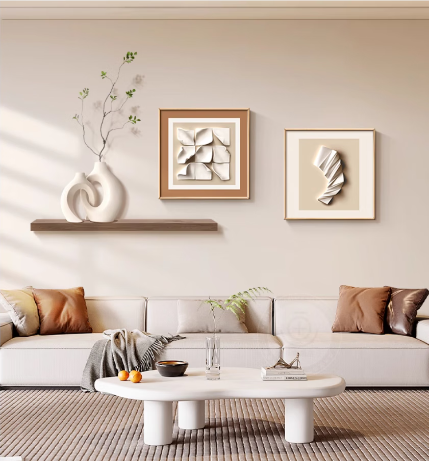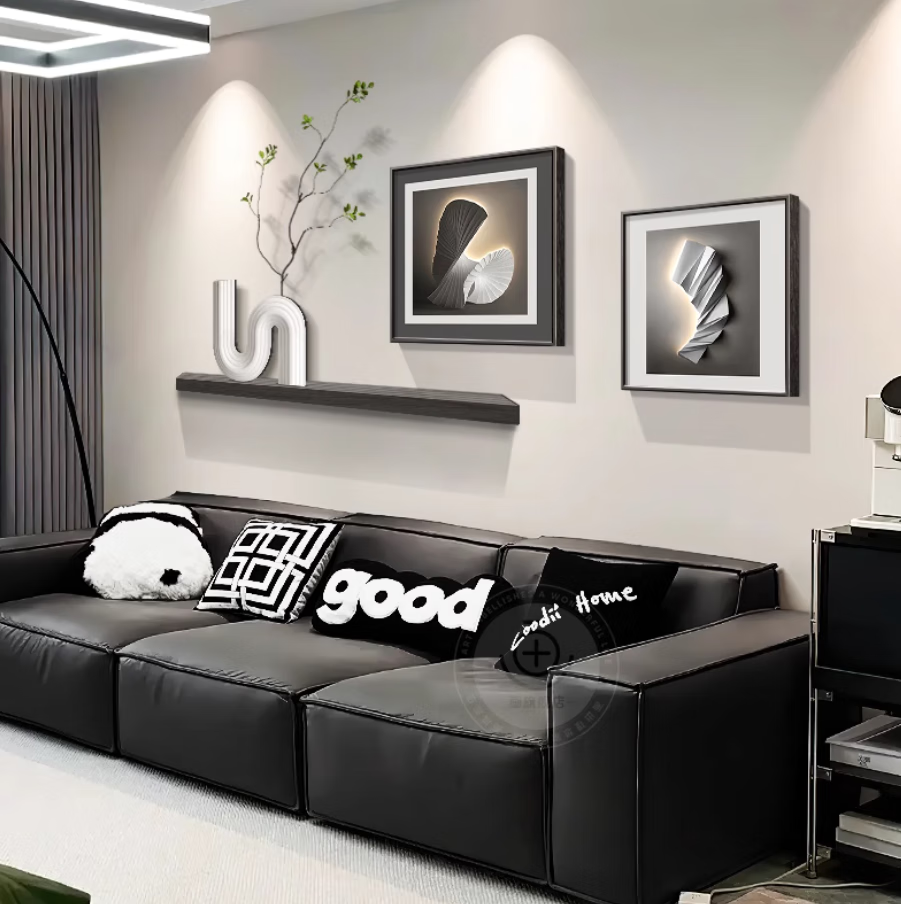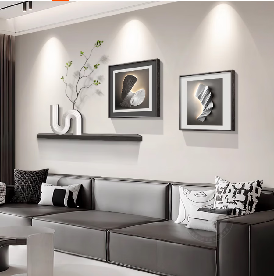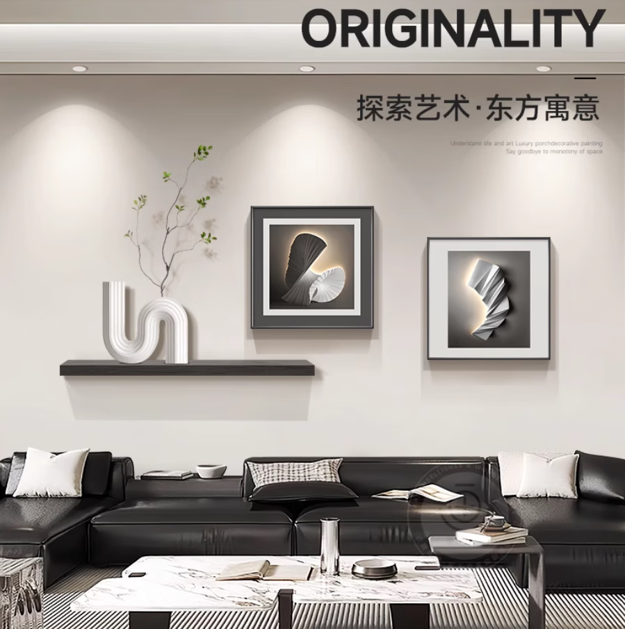 Lampkeeper Living Room Decorative Painting Geometric Abstract Light Luxury High-Quality Sofa Background Wall Hanging Painting 2025 New Restaurant Mural Type A-Abstract Art 95*35 (UV Carved)/50*50/50*50 Aluminum Alloy Black Frame