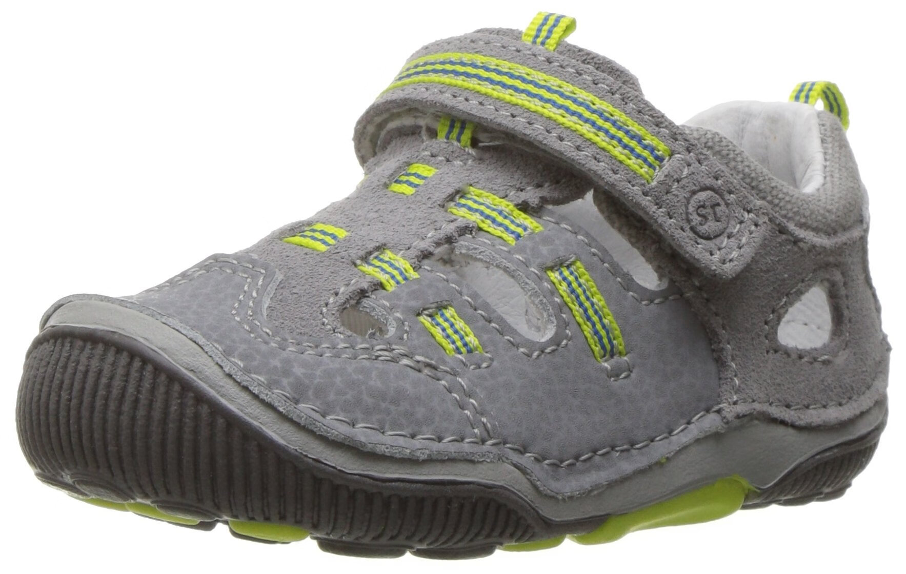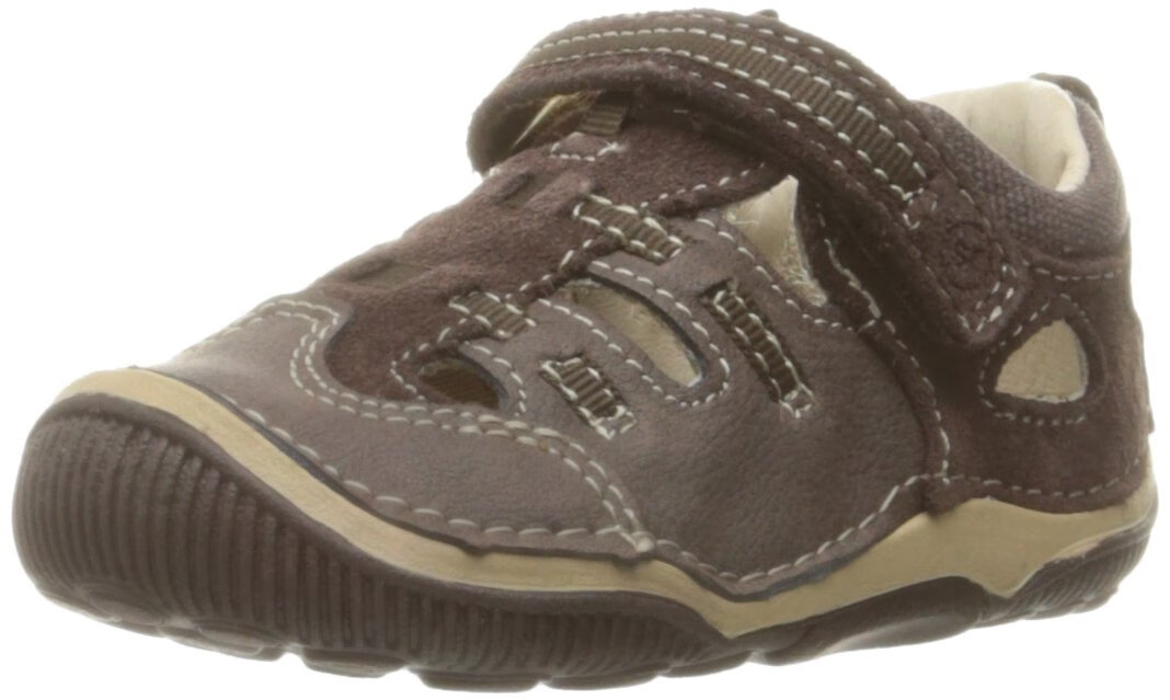 Stride rite children's toe-cap sandals, lightweight and comfortable outdoor sports shoes, Velcro design, Brown 4 Wide Toddler