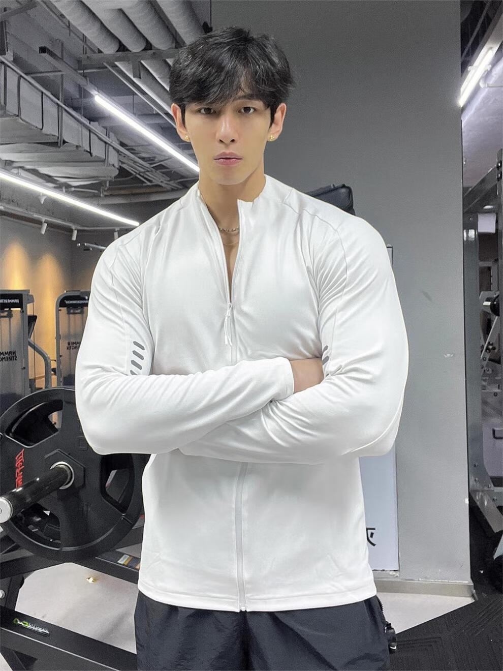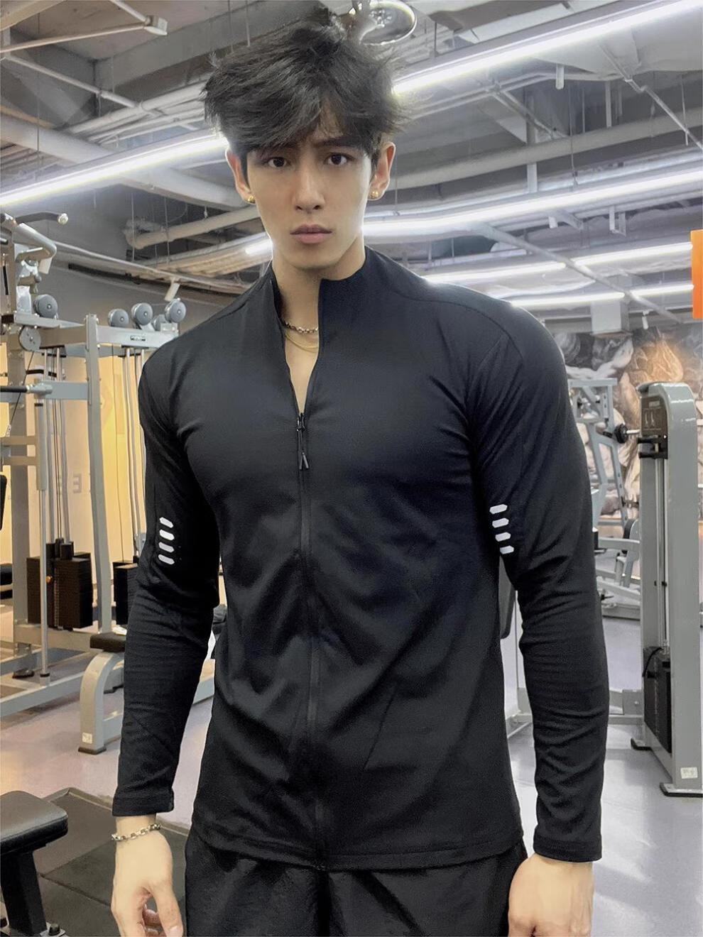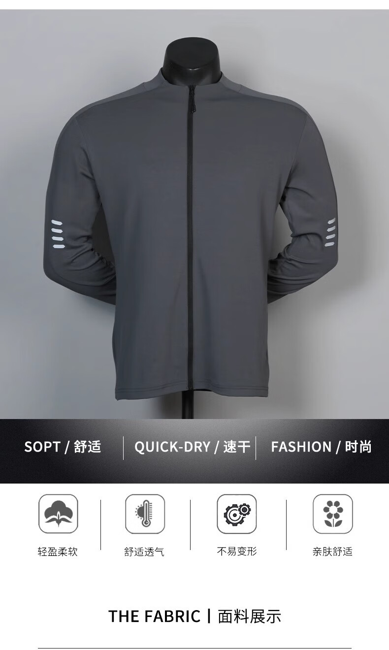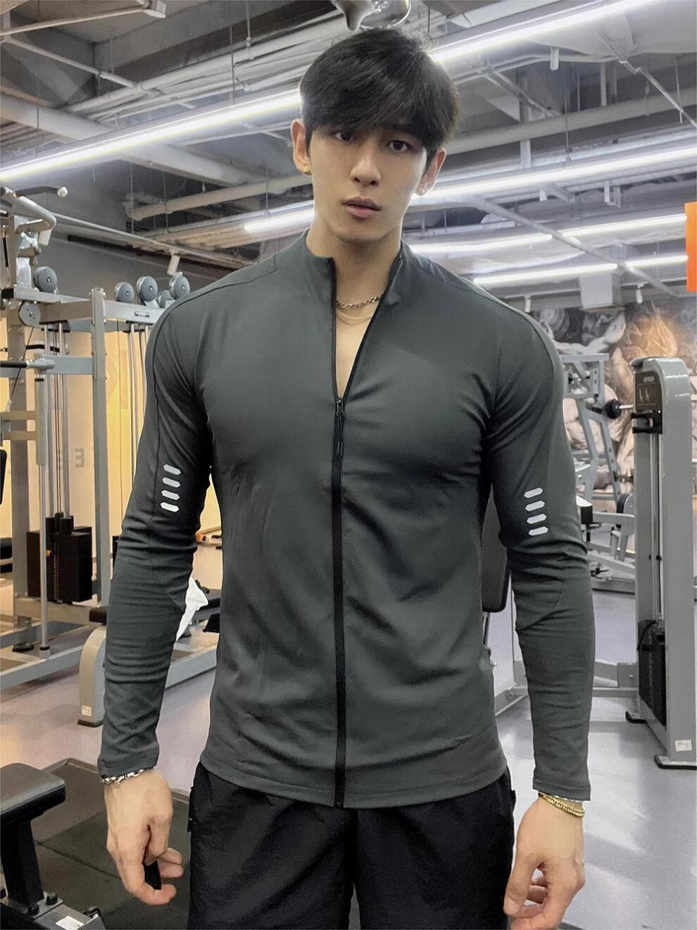 OIMG American fitness clothes men's sports long-sleeved cycling jacket quick-drying slim stretch running training zipper cardigan gray XL recommended 140-160Jin Jin equals 0.5 kg