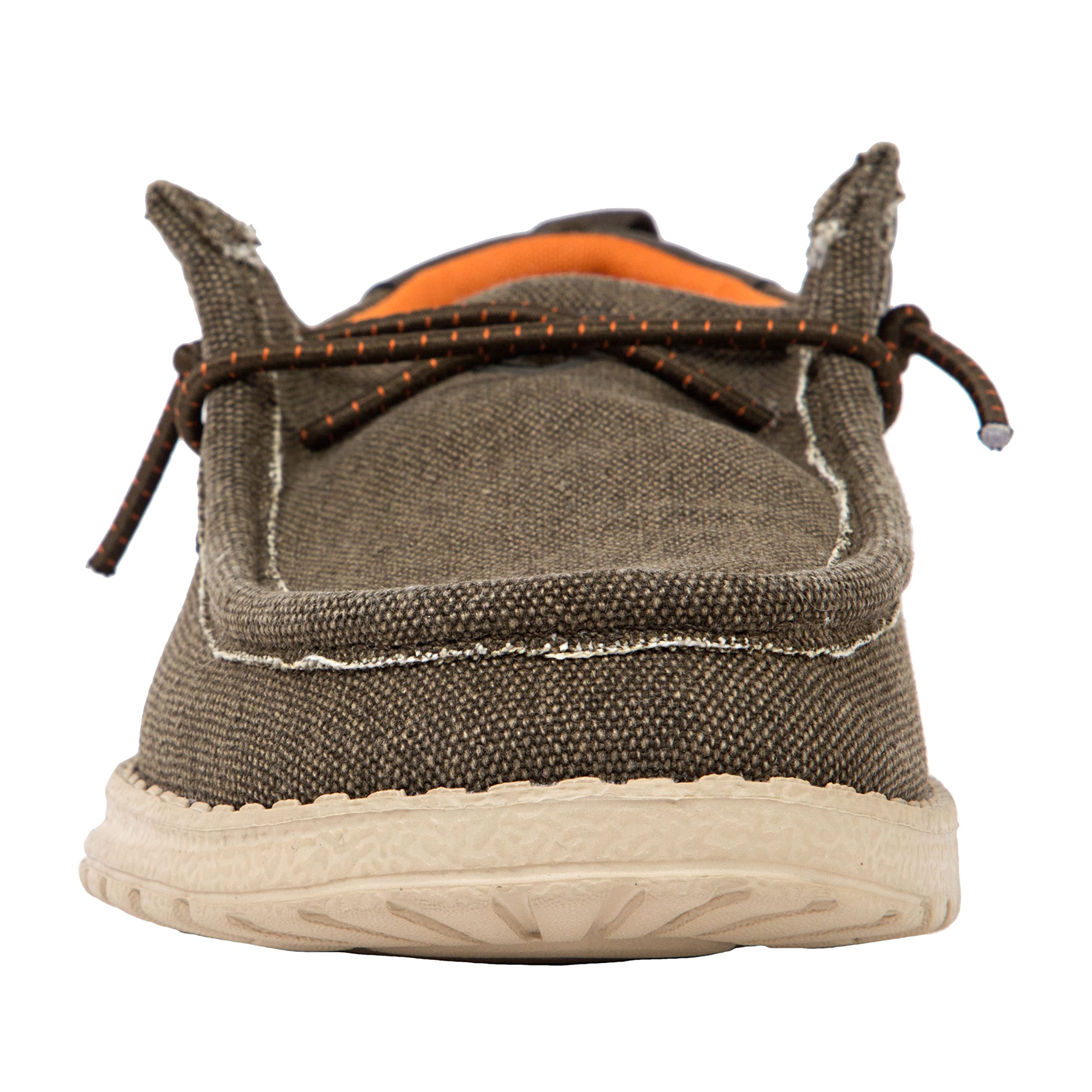 Deer Stags boys' casual sneakers, lightweight and comfortable elastic shoelaces, canvas fabric Olive/Orange 6 Big Kid
