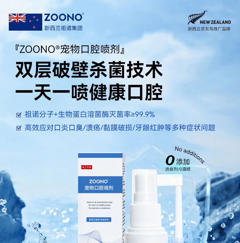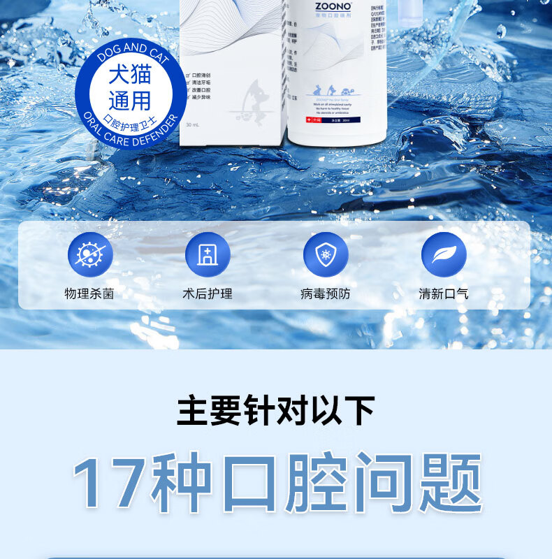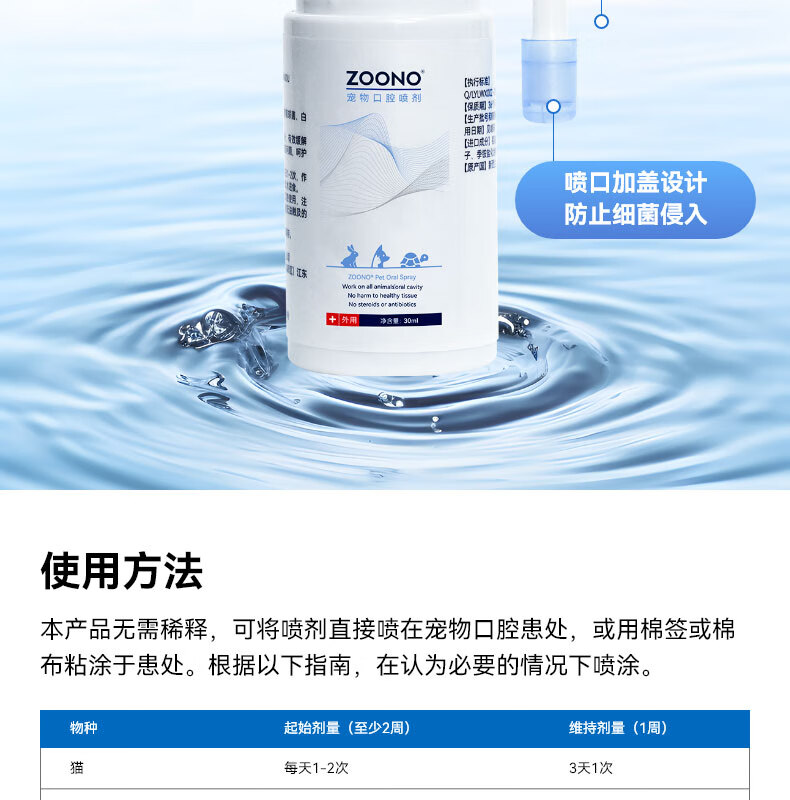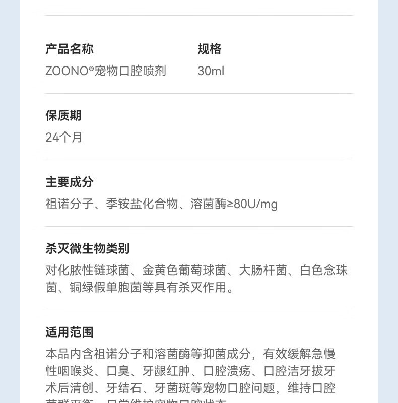 ZOONO Pet Oral Spray Antibacterial Disinfection Removes Bad Breath Calculus Periodontitis Fresh Breath Care Spray Treats Red and Swollen Gums, Bad Breath and Stomatitis Daily Care 30ml