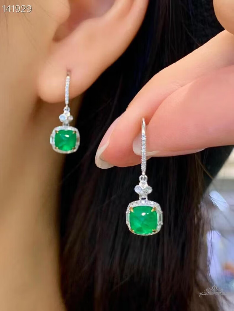 HEEKAIYI Emerald Earrings for Women, Emerald Diamond Luxury Jewelry, Chinese Valentine's Day, Birthday Gift for Wife, Selected 1.1 Carat Emerald Gemstone Earrings