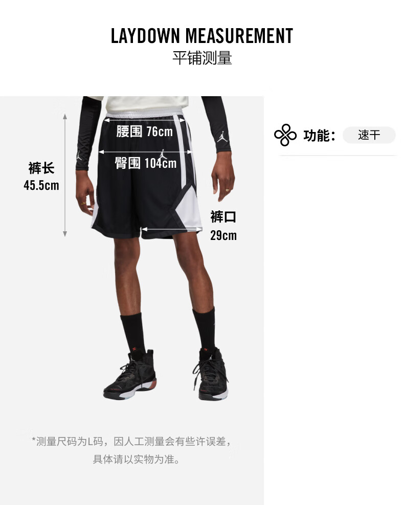 Nike (NIKE) Jordan DRI-FIT men's quick-drying basketball shorts custom team uniform HF0526 012 black/white/white S