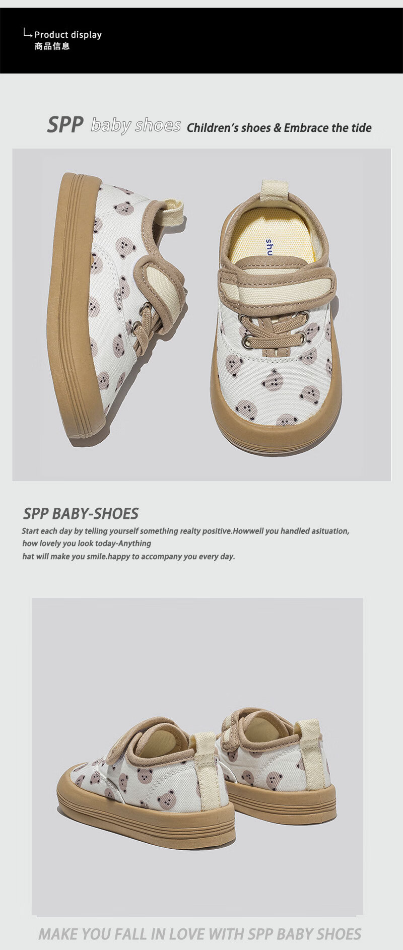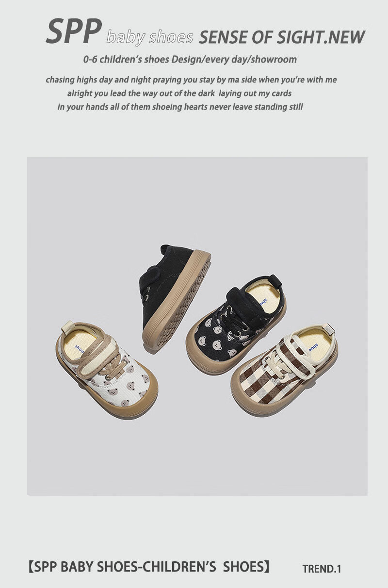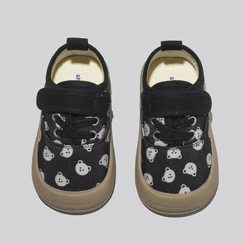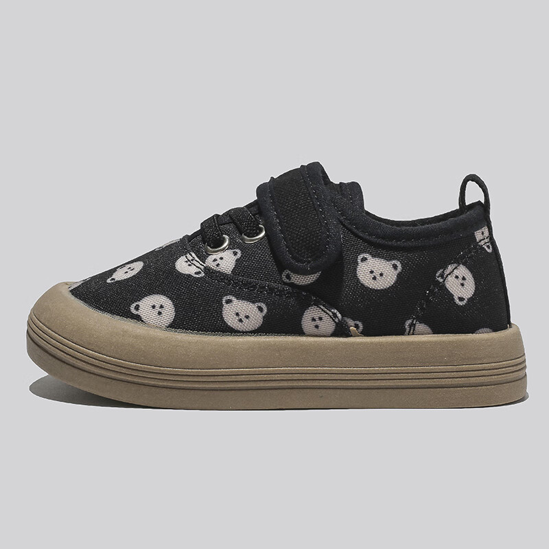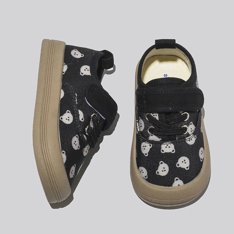 Clearance Autumn Korean Cartoon Bear Children Canvas Shoes for Boys and Girls Baby Casual Boys and Girls Shoes Bear Black 19 Inner Length 12.9cm