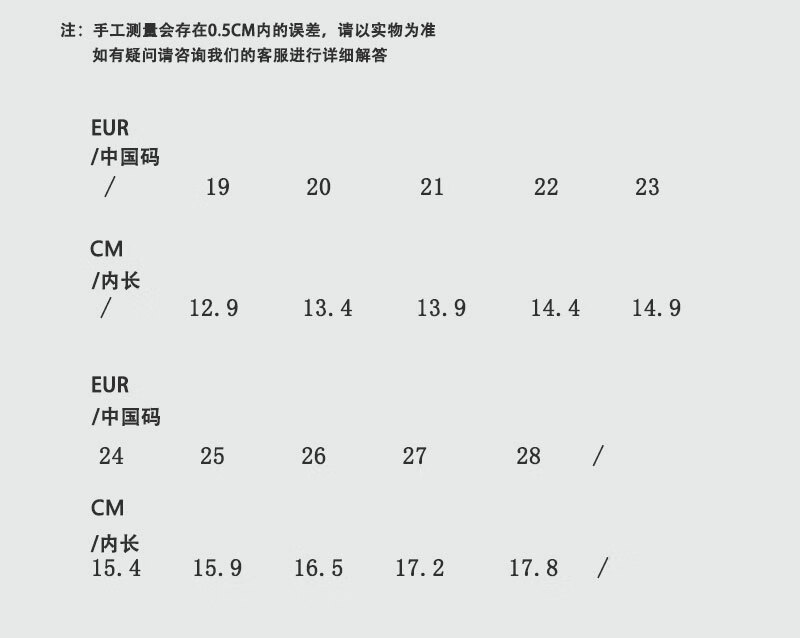 China (cm) 36 - 37 38 - 39 40 - 42 43 - 44 45 - 47
