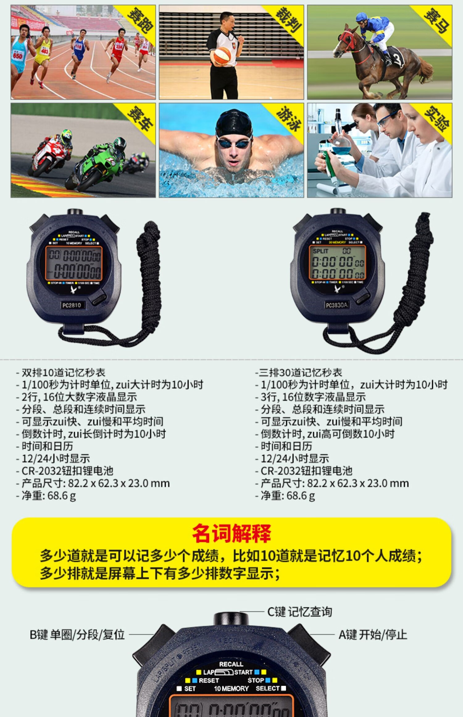 Tianfu electronic stopwatch timer coach competition dedicated professional running track and field sports physical education teacher PC2810 Tianfu PC3830A stopwatch three rows 30 channels