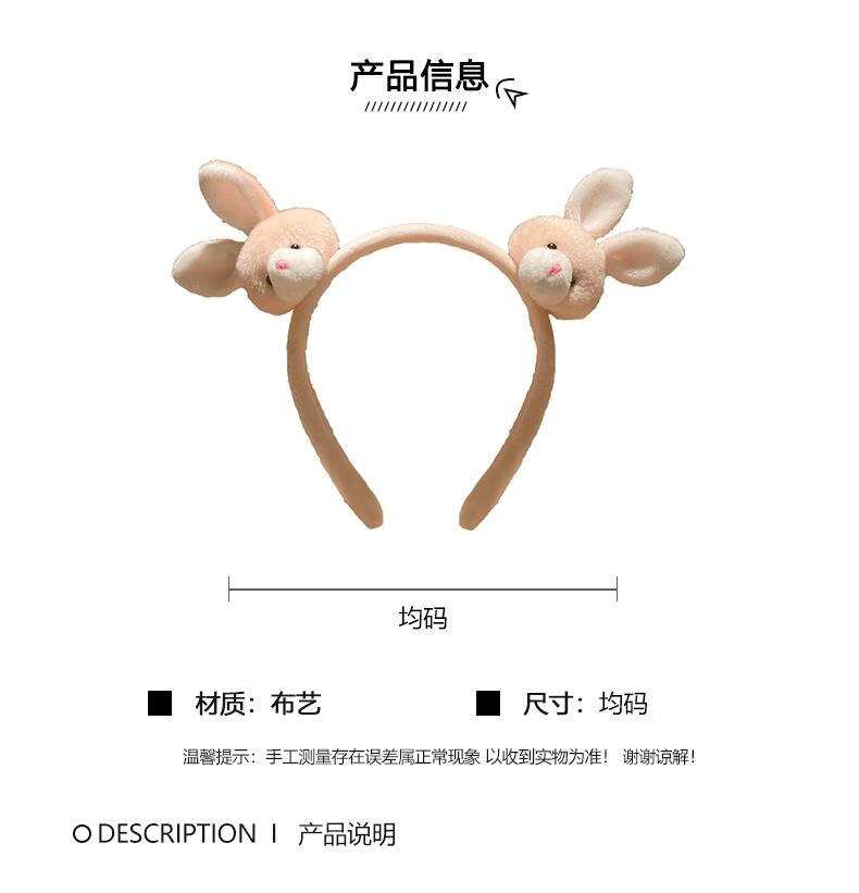 XPEL autumn and winter plush headband new children's cute rabbit girl headband little girl's headband baby hairpin headdress pink double-headed rabbit headband 1 pack