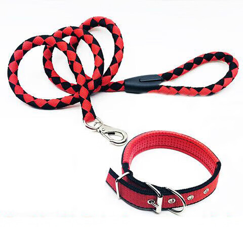 Dog collar leash, pet walking leash, large, medium and small dog chain, foam neck collar, golden retriever collar, red, size M, about 12-25 Jin, Jin is equal to 0.5 kg